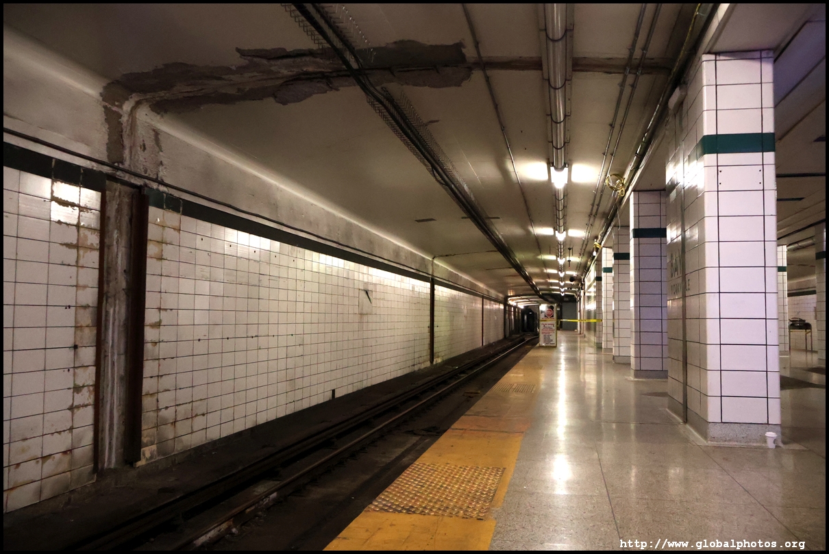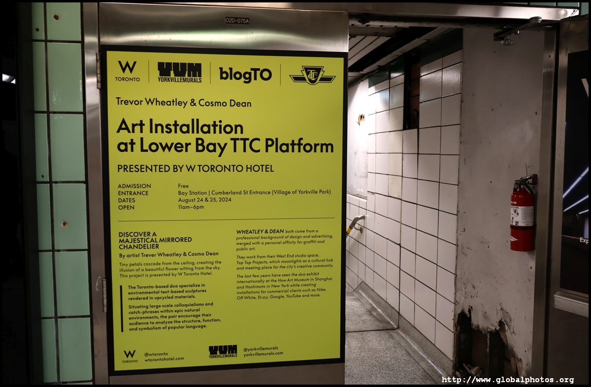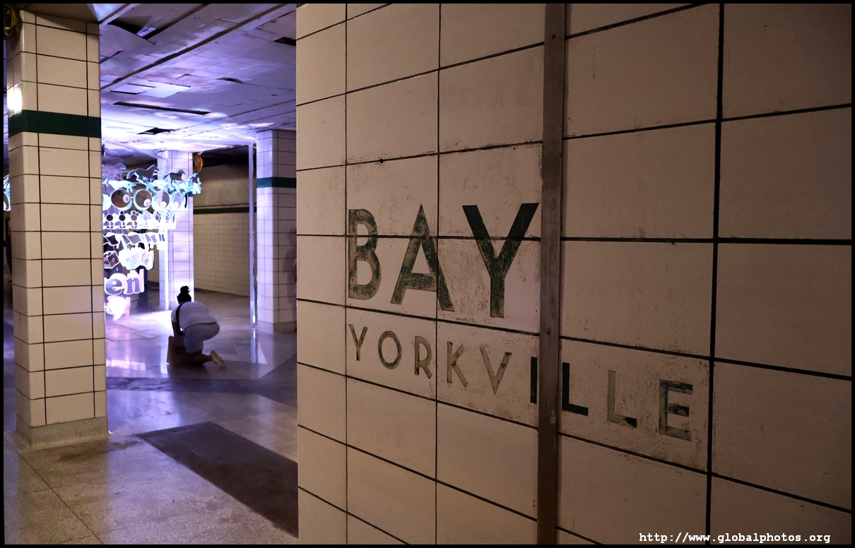 Beneath Line 2's Bay station is an abandoned second set of platforms, commonly referred to as "Lower Bay". They opened in 1966 as part of the Bloor-Danforth Line and the extra platforms allowed a hybrid route that combined with the University Line to loop around downtown. It caused a lot of confusion and the plan was scrapped after only 6 months.While it only lived a short life serving transit passengers, Lower Bay has been used for media productions and opens rarely, such as during the annual Doors Open event. As part of the Yorkville Murals art event, a chandelier by Trever Wheatley and Cosmo Dean was installed inside the abandoned platform and opened to the public for an August weekend (2024).