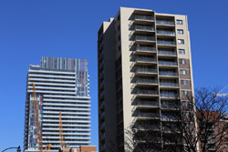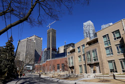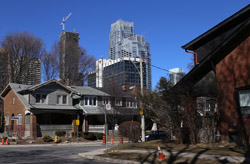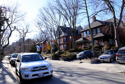 The density tapers off quickly west of Yonge with streets of detached houses. These quiet neighbourhoods enjoy easy subway access within walking distance and the benefits of malls and restaurants that line highrise developments along Yonge.