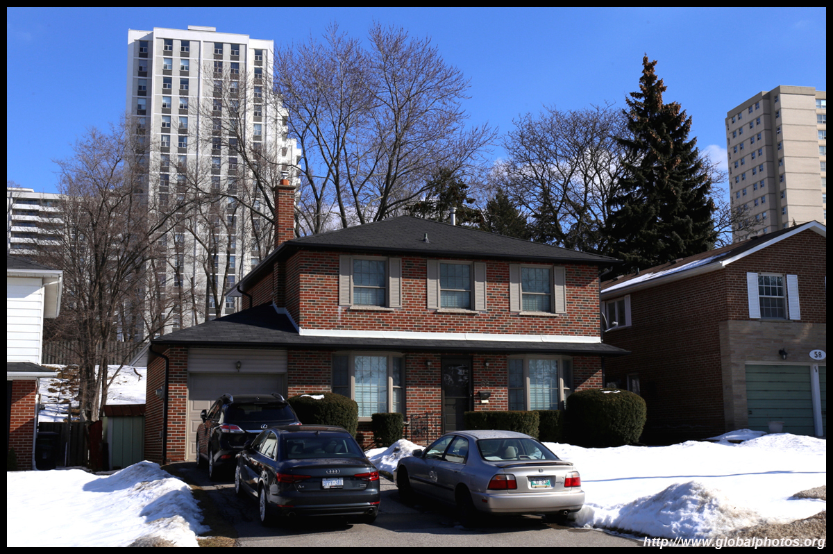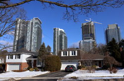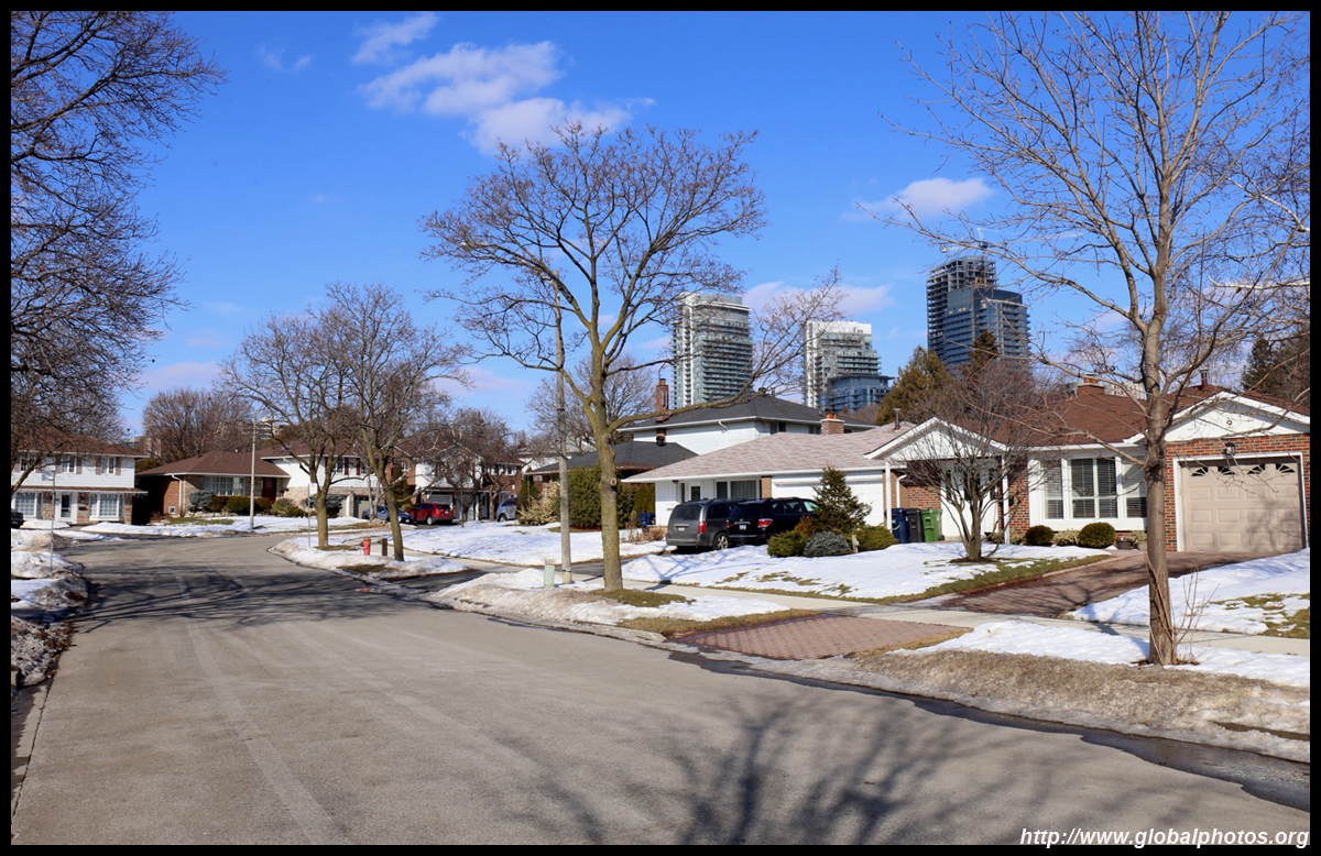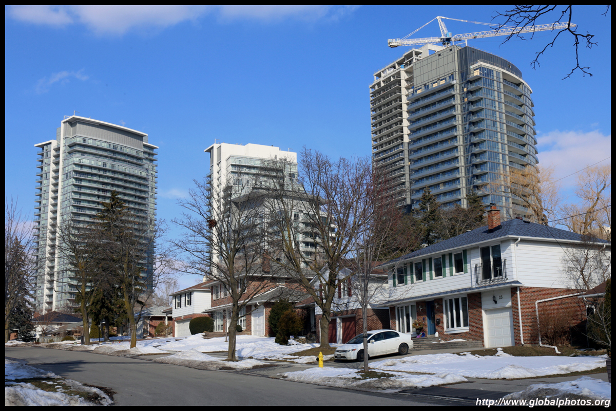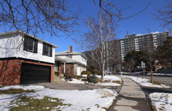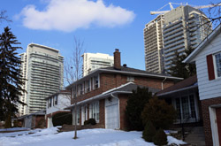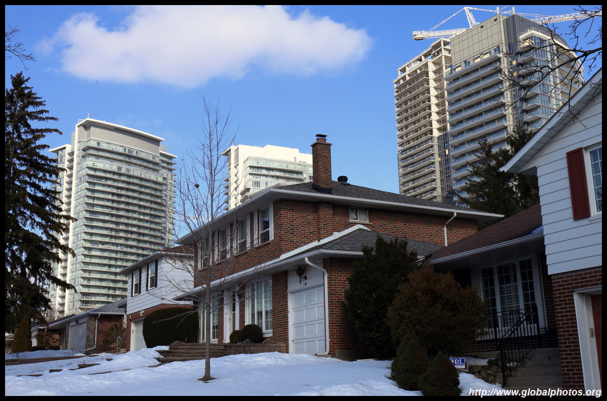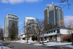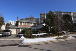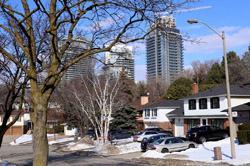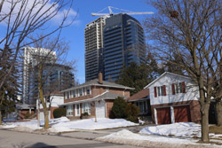 While North York's centre along Yonge Street is lined with highrise residentials and office buildings, the density tapers off quite quickly blocks away. Single family detached houses are common just off the large arterial roads.