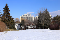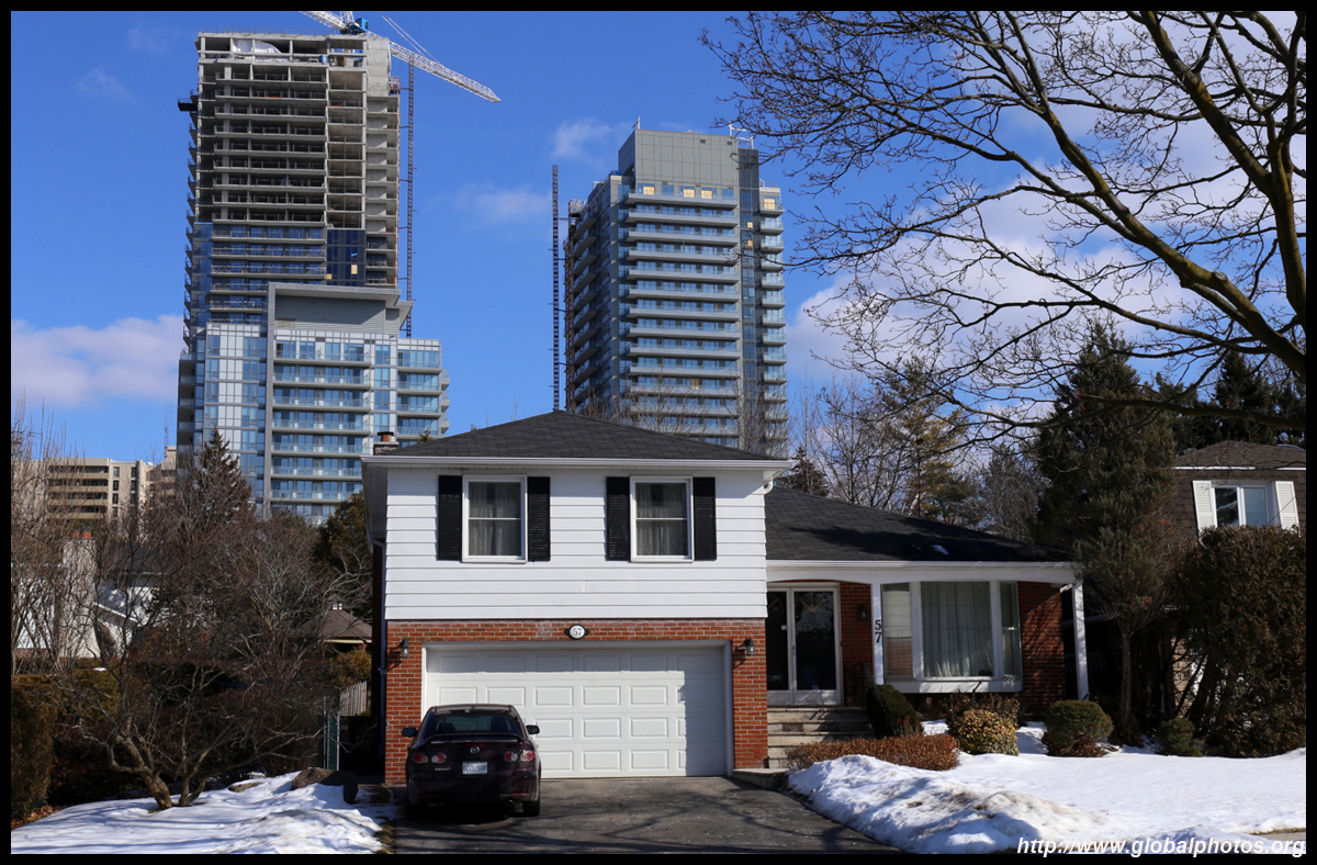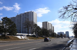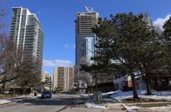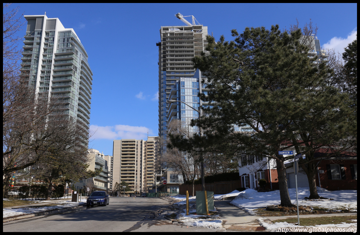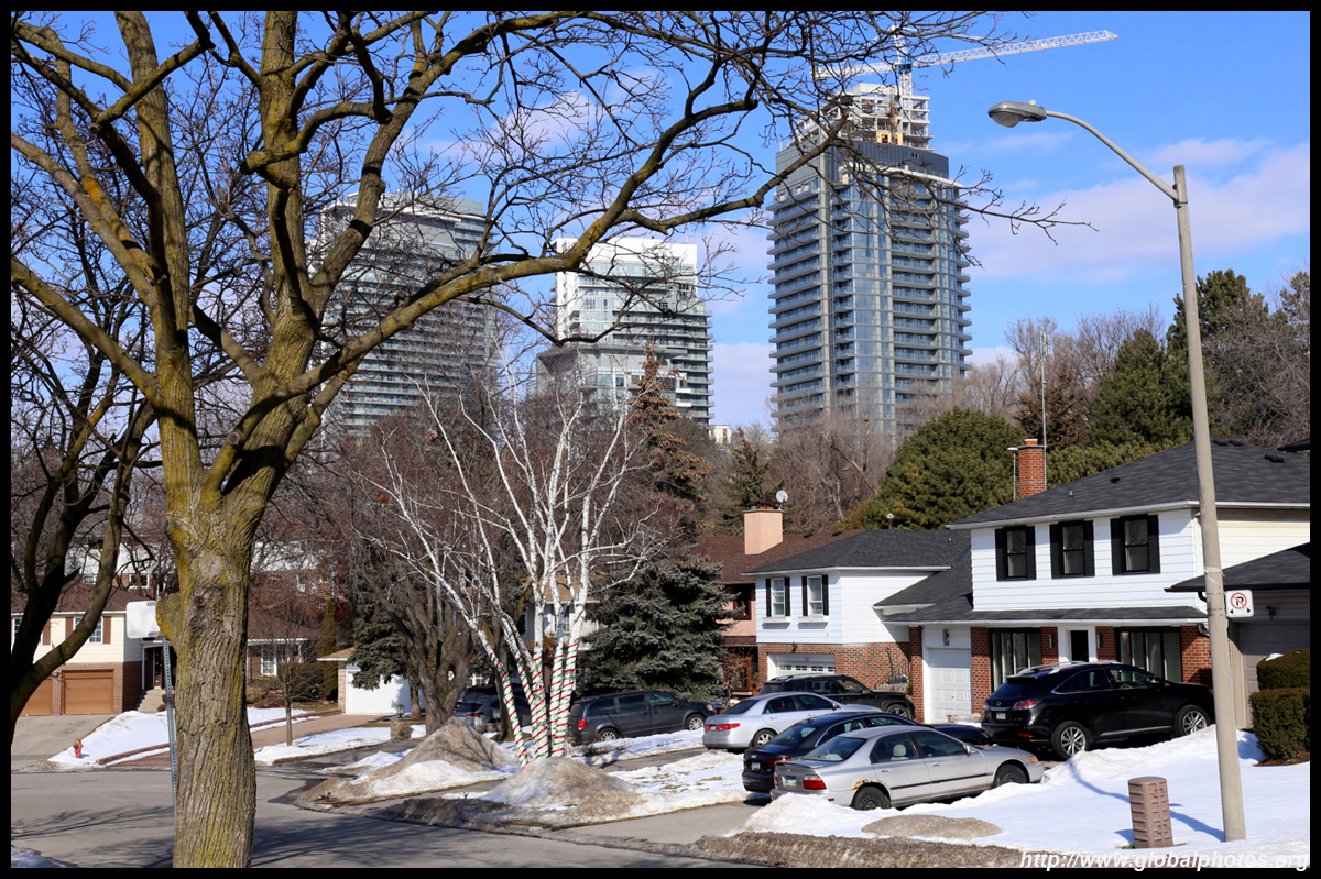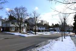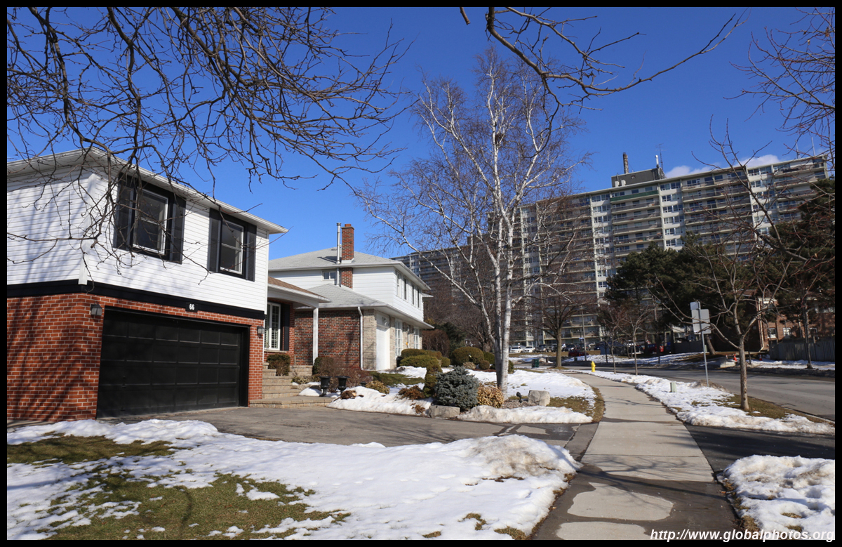 While North York's centre along Yonge Street is lined with highrise residentials and office buildings, the density tapers off quite quickly blocks away. Single family detached houses are common just off the large arterial roads.