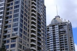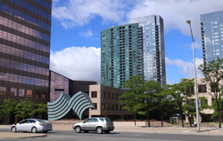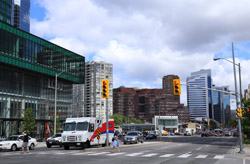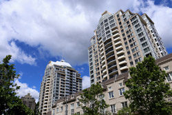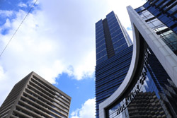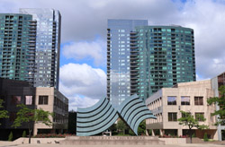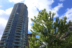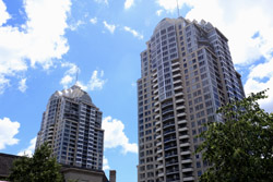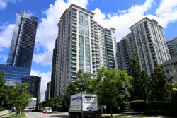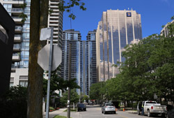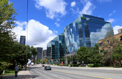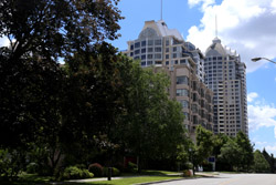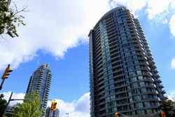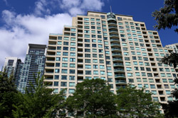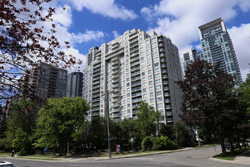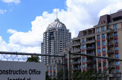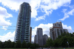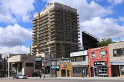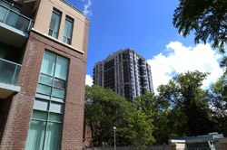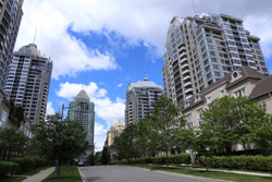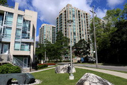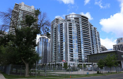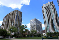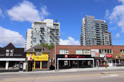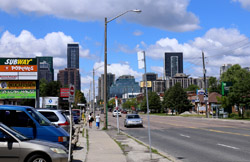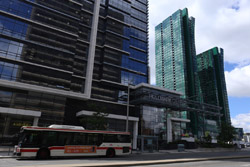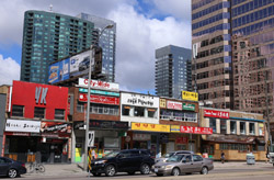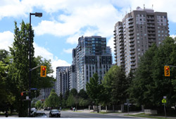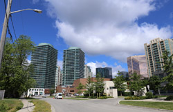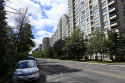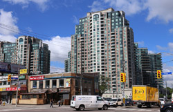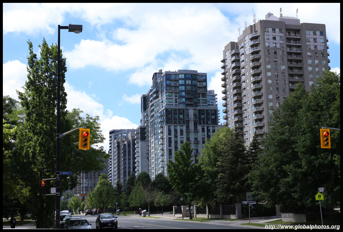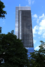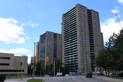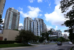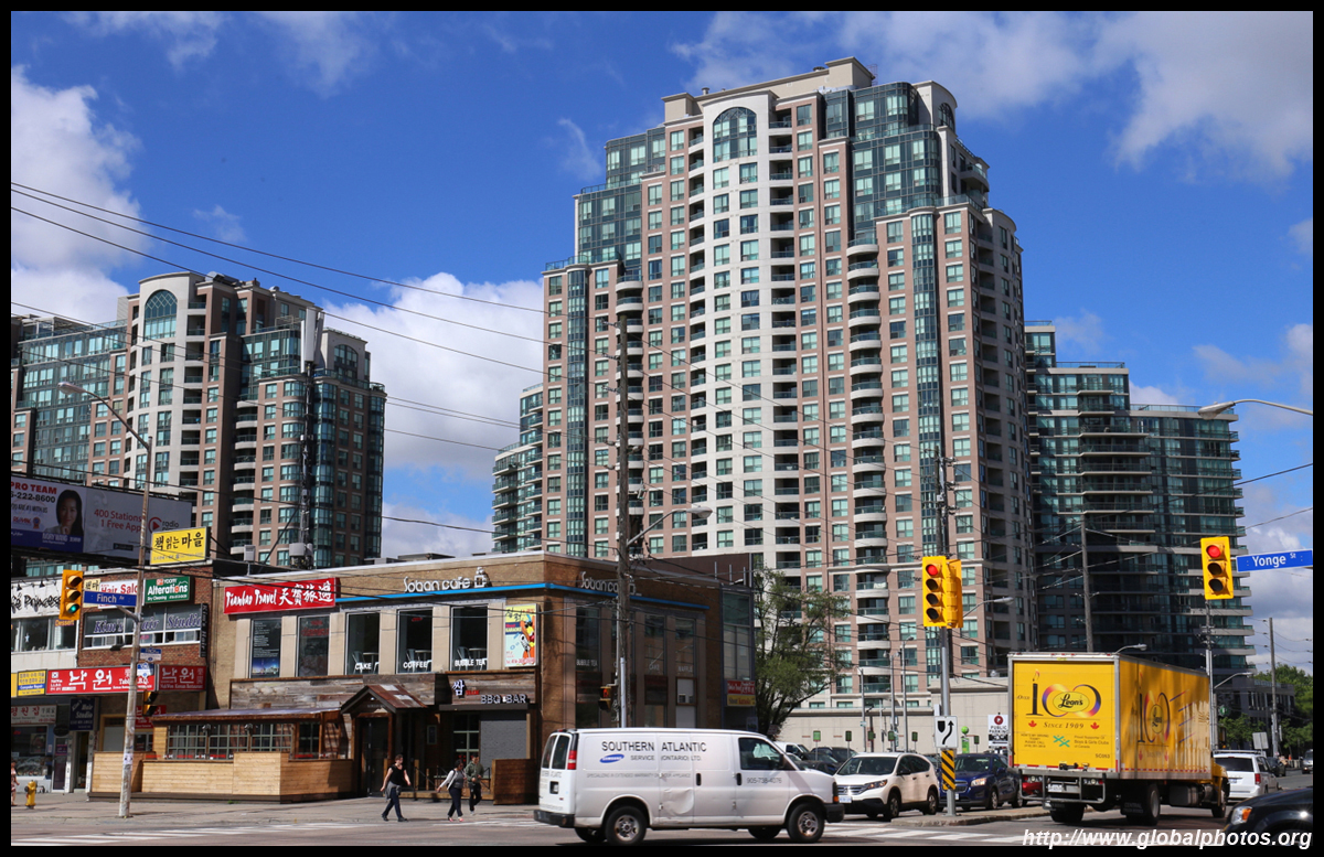 Back when there was little civic unity between Toronto's various mayors, they were in competition to lure business out of the downtown core. Mayor Mel Lastman's answer in North York was to build up along Yonge Street. Although there are office towers, this new downtown has become an expensive residential area instead. All this began when the subway was extended to Finch in 1974, followed by an additional North York Centre station being added in 1987.