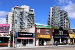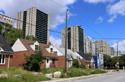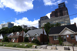 Before development intensified in these neighbourhoods, the large arterial roads were lined with single family homes like these.