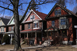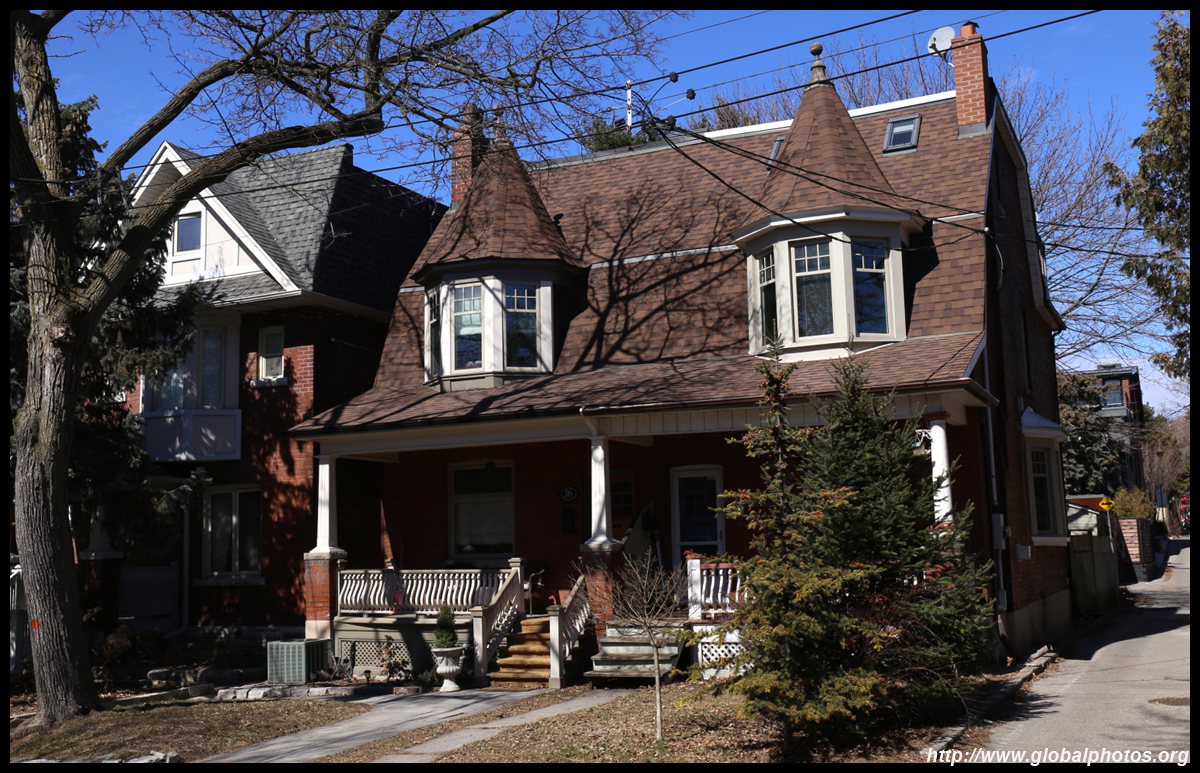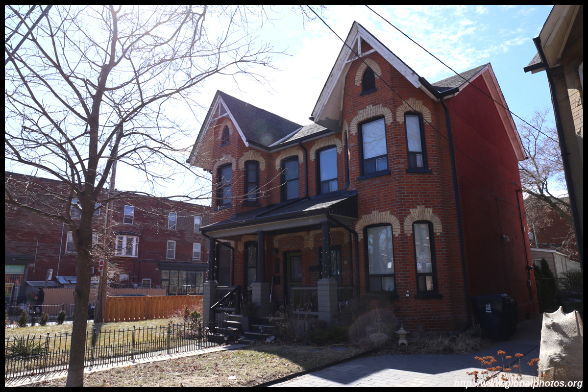 The Toronto House Building Association was the first company to actively promote and develop real estate in Parkdale and it was likely that they gave the area its name. It was often referred to as ‘The Flowery Suburb’ and "The Parkdale Register" said it had "the diversified scenery of an undulating expanse of fertile country, wooded, watered, cultivated, and adorned with attractive homes".