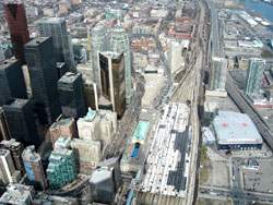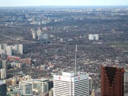 Completed in 1976, the CN Tower is the world's tallest freestanding structure. At 553 metres (1815 feet) tall, it offers 3 observation decks : one at 342 metres with a glass floor and outdoor lookout area, an indoor deck at 346 metres, and the world's highest public observation deck at the Sky Pod (447 metres / 147 stories). The elevator ride to the lowest observatory takes only 58 seconds.
