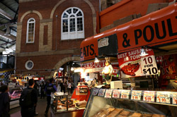 St. Lawrence Market's building originally housed the city hall when it was built in 1844. A food market emerged around the building at the turn of the 20th century. Today, it remains a food destination, serving both raw materials as well as cooked foods. You will notice a line emerging from the seafood shop. Try the famous lobster roll.
