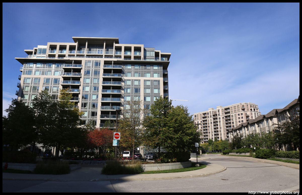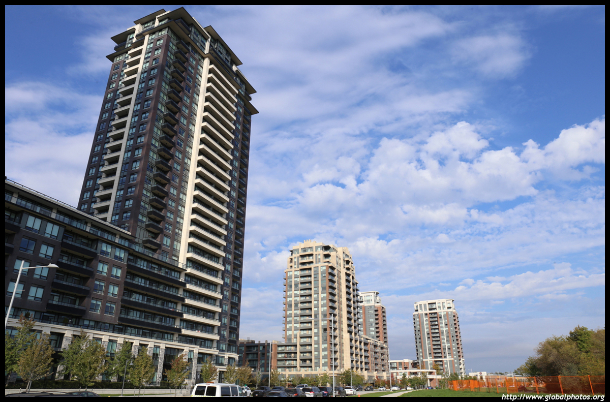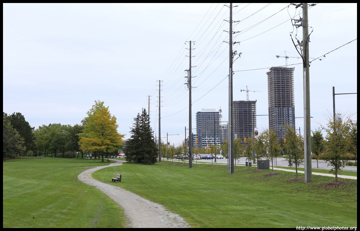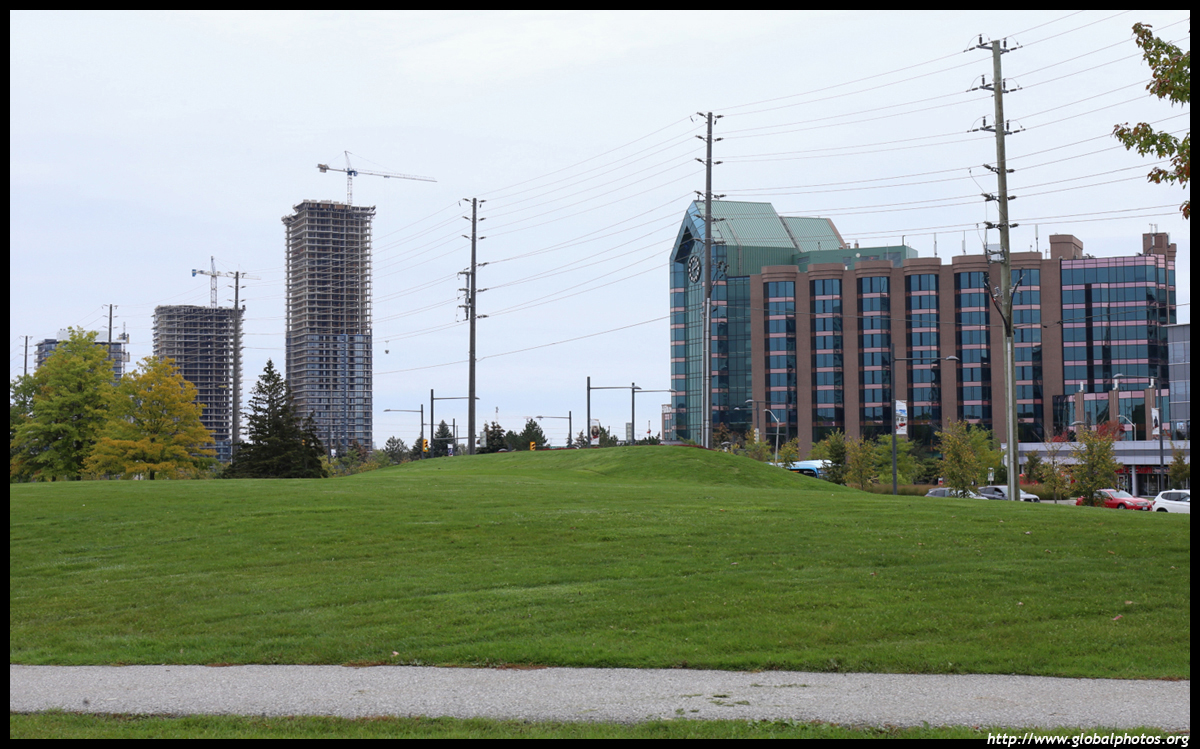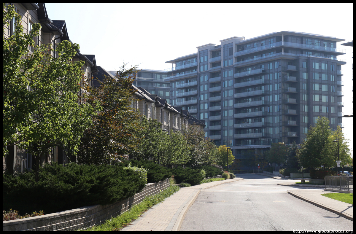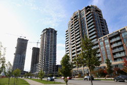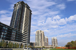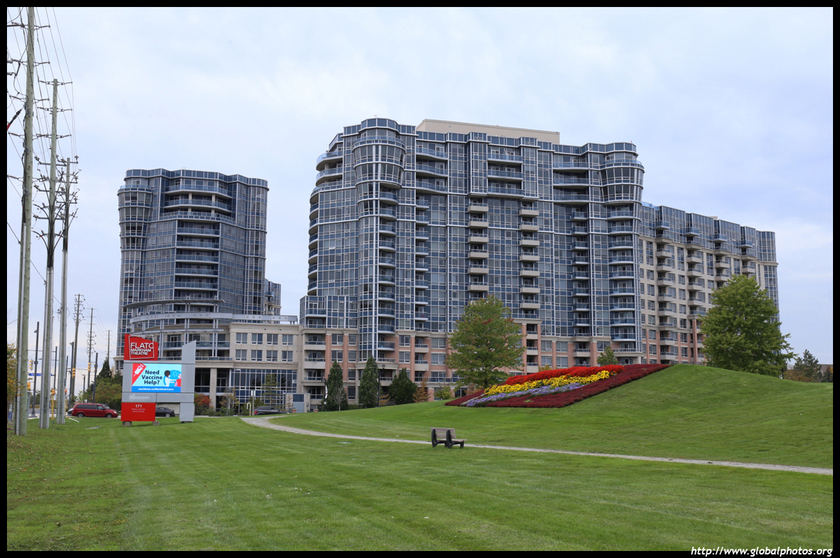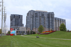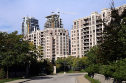 Trying to shed away the typical suburb's image of lowrise sprawl, many highrise projects are being developed along the Highway 7 corridor, the major east-west road. Between Bayview and Leslie, a piece of land edged against the noisy Highway 407 has been transformed into a community of mixed densities.