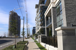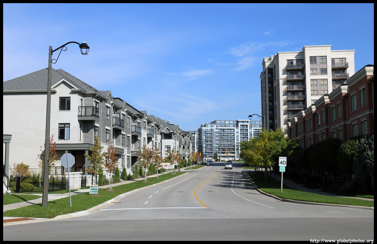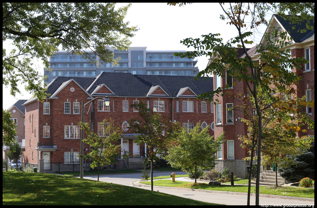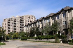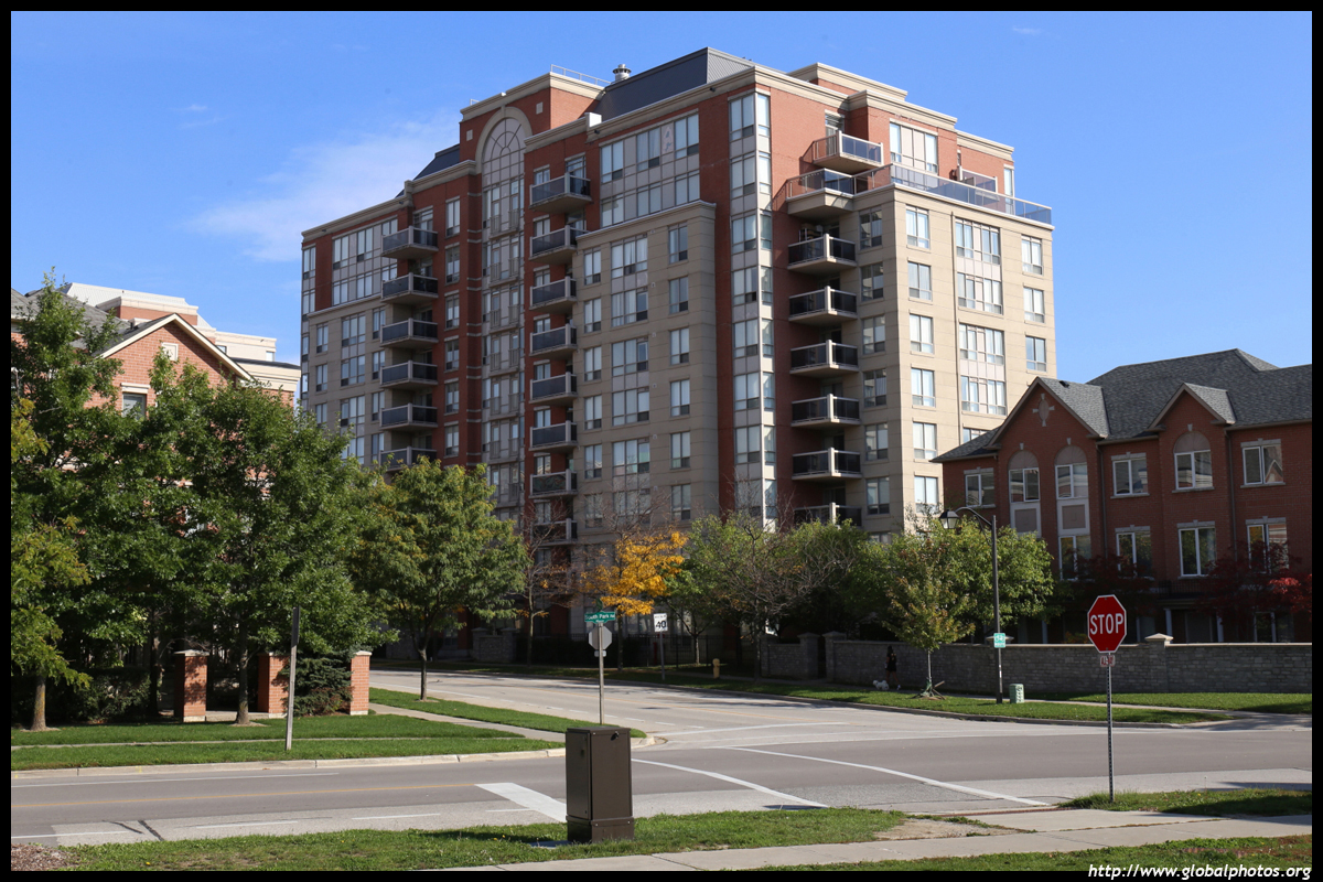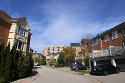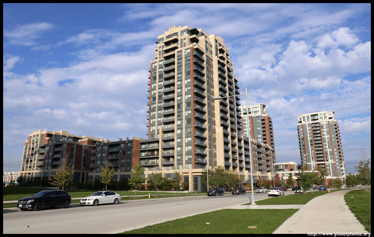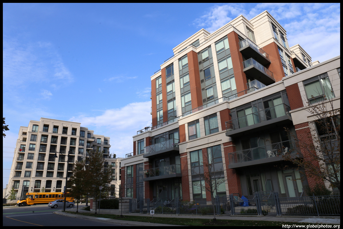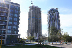 Trying to shed away the typical suburb's image of lowrise sprawl, many highrise projects are being developed along the Highway 7 corridor, the major east-west road. Between Bayview and Leslie, a piece of land edged against the noisy Highway 407 has been transformed into a community of mixed densities.