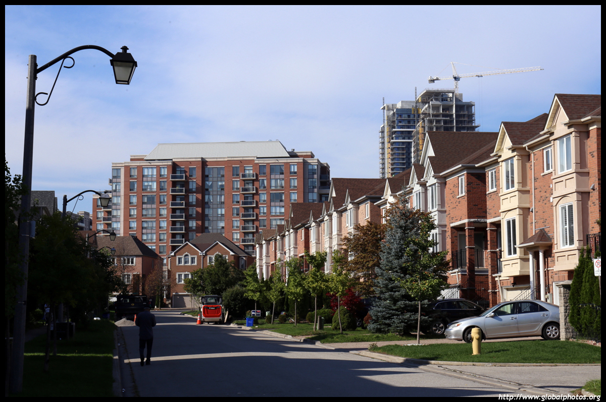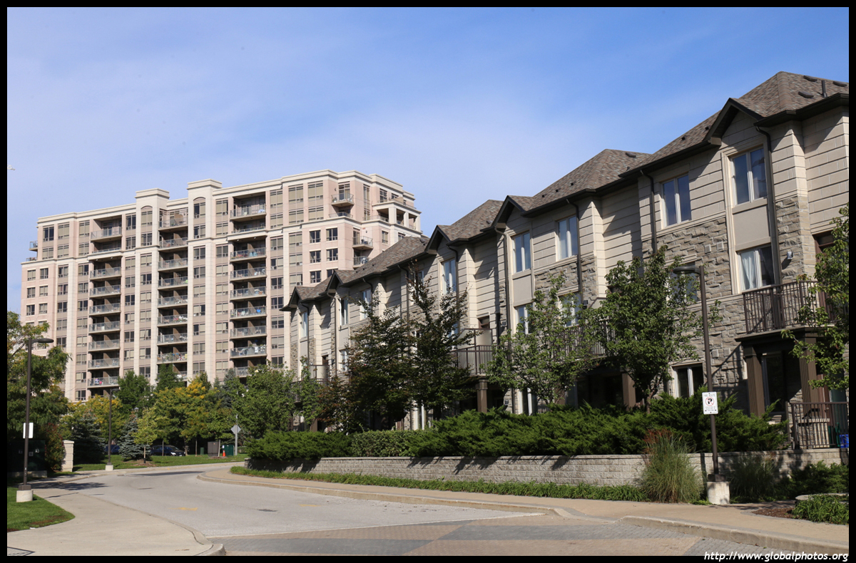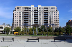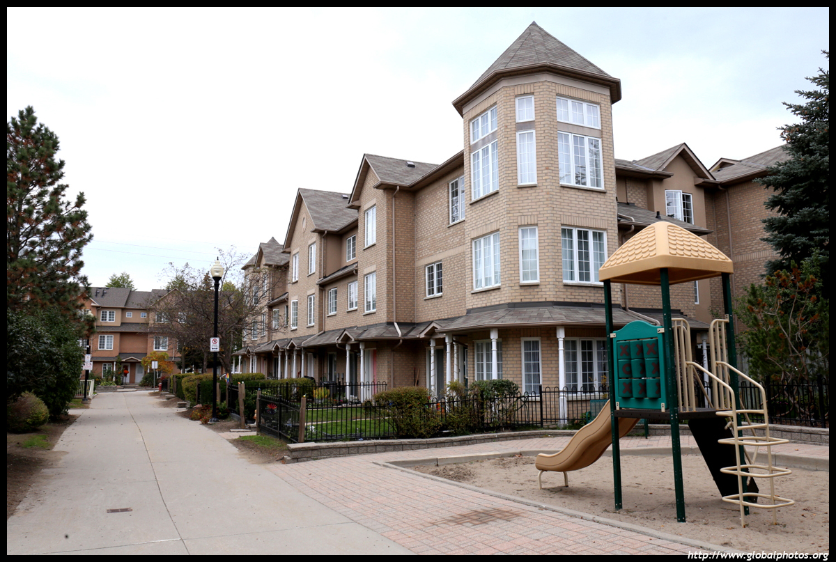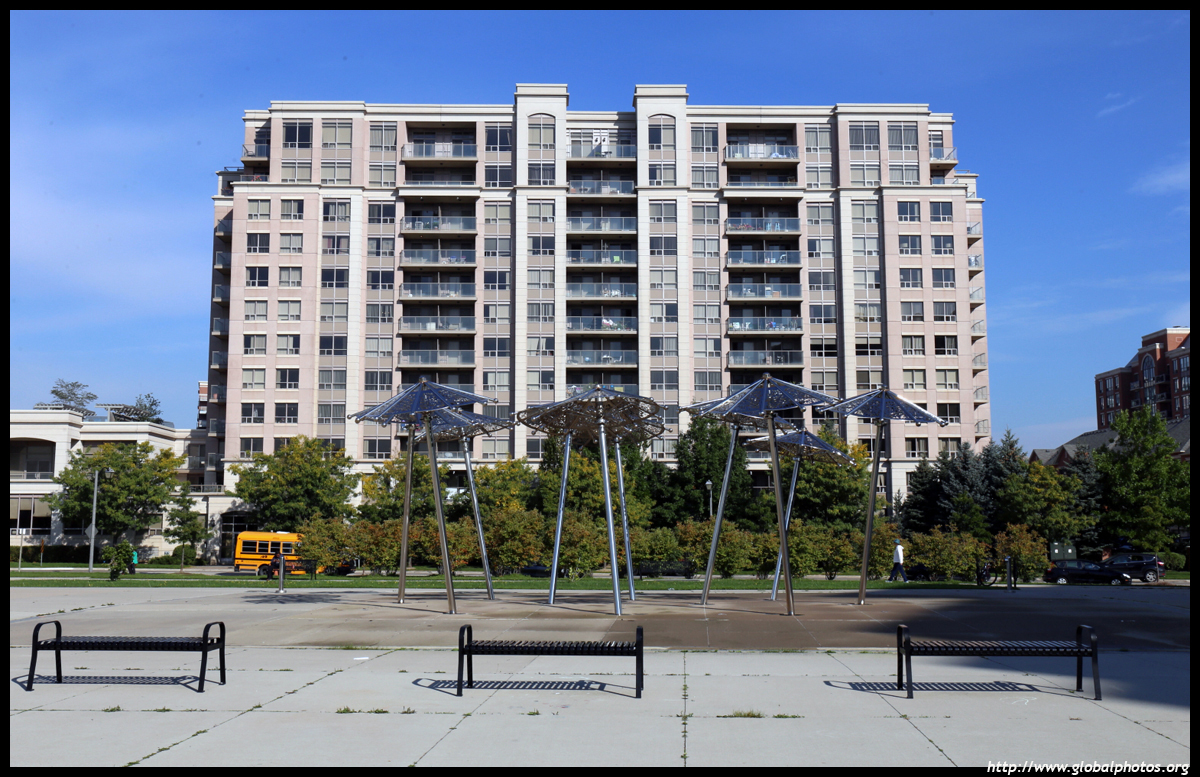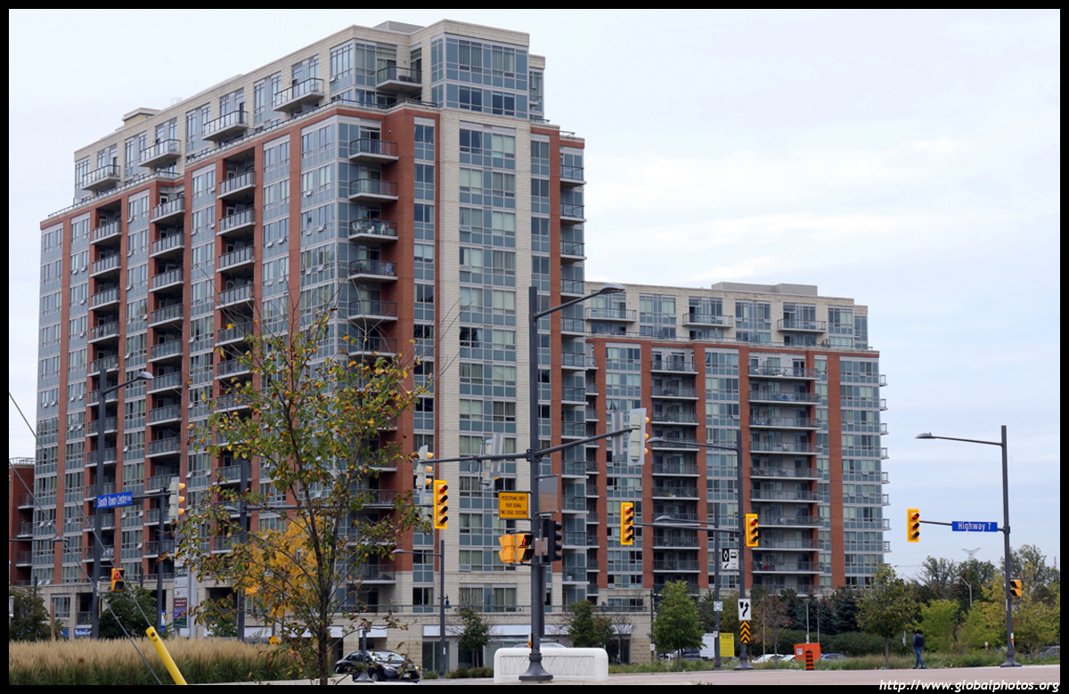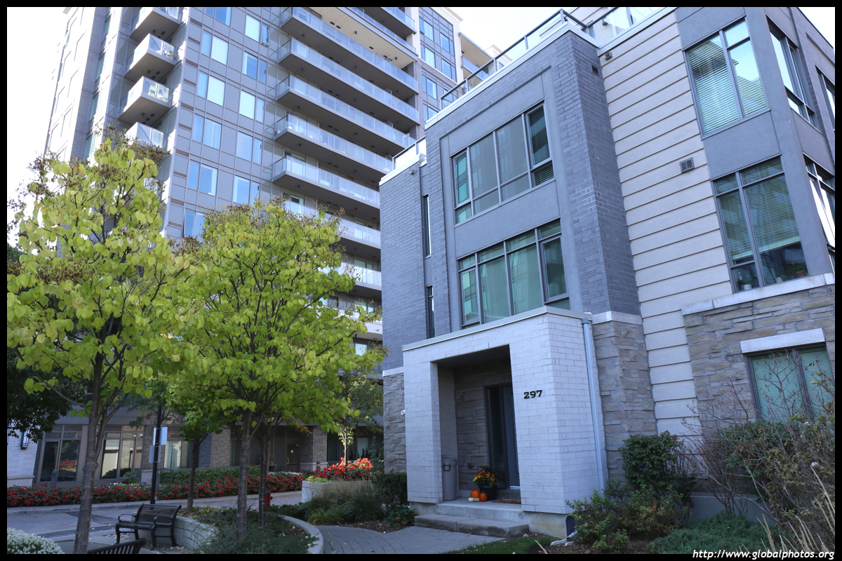 Trying to shed away the typical suburb's image of lowrise sprawl, many highrise projects are being developed along the Highway 7 corridor, the major east-west road. Between Bayview and Leslie, a piece of land edged against the noisy Highway 407 has been transformed into a community of mixed densities.