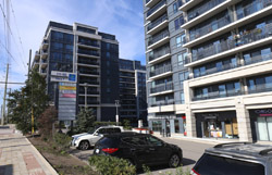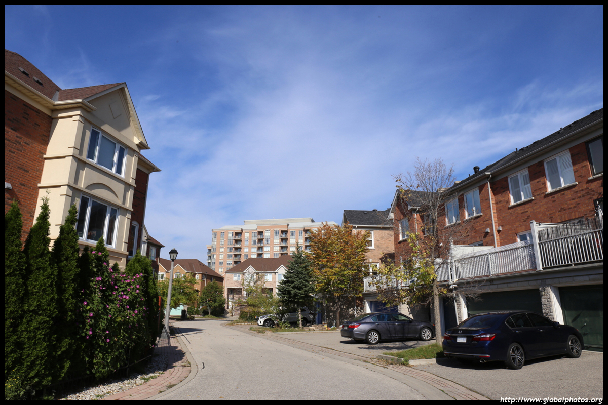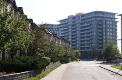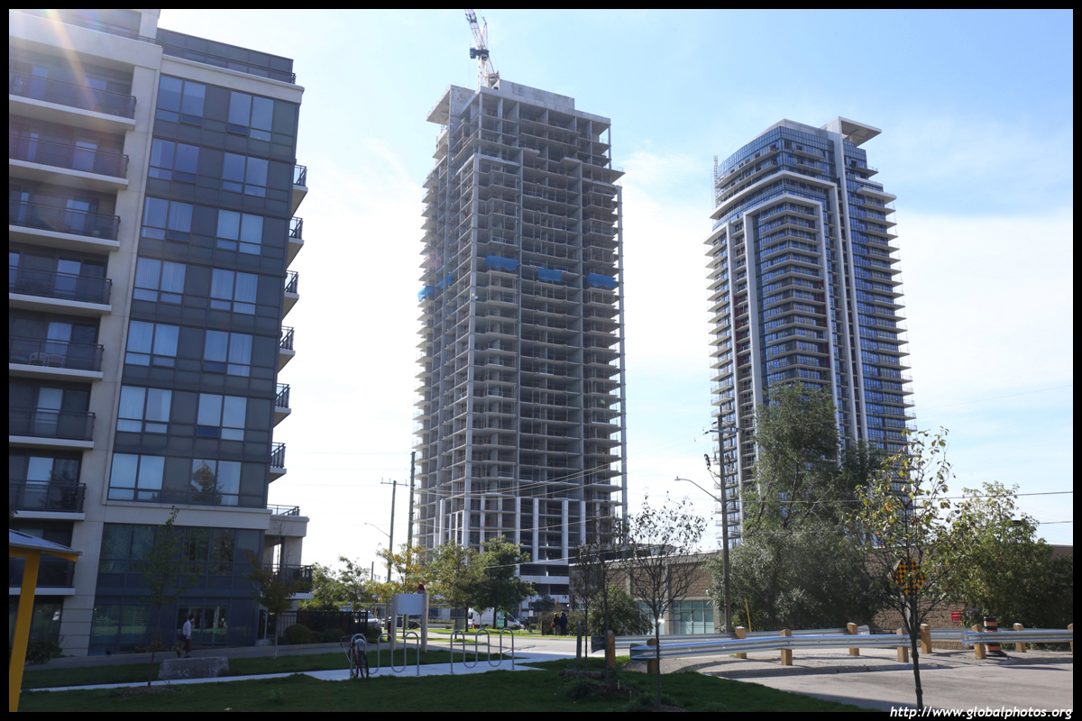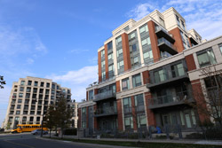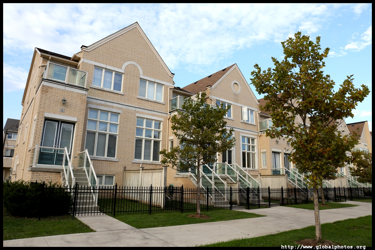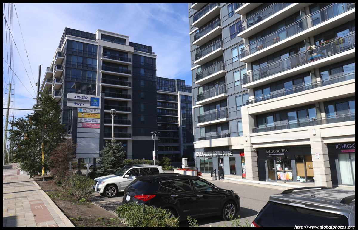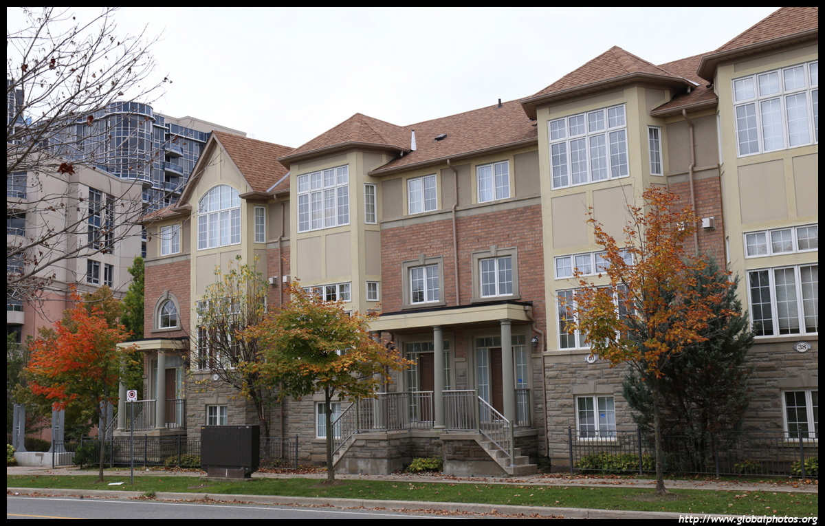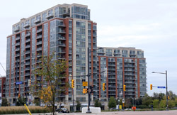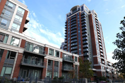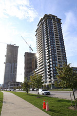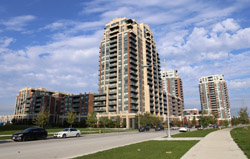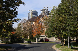 Trying to shed away the typical suburb's image of lowrise sprawl, many highrise projects are being developed along the Highway 7 corridor, the major east-west road. Between Bayview and Leslie, a piece of land edged against the noisy Highway 407 has been transformed into a community of mixed densities.