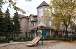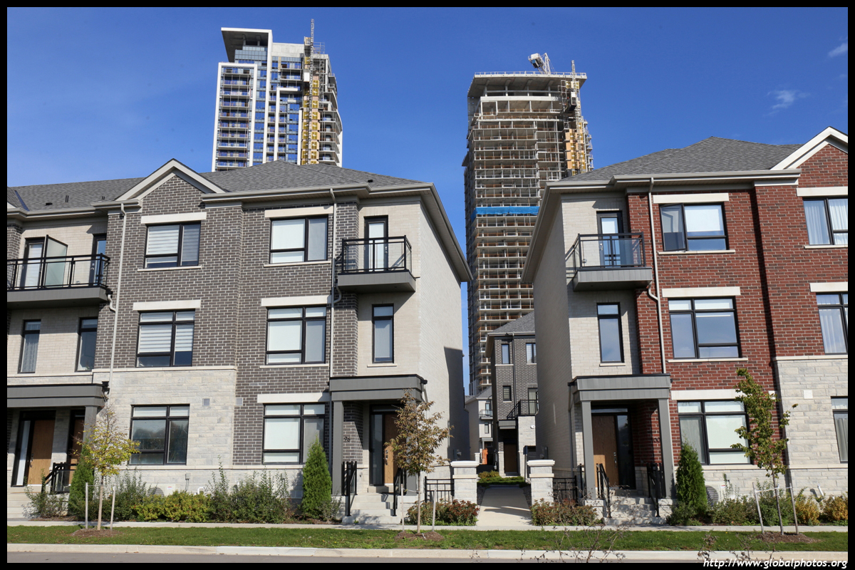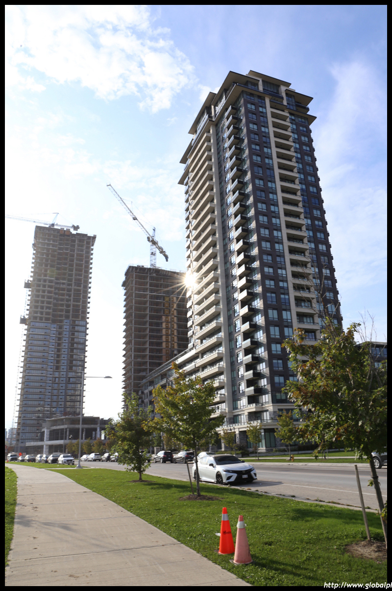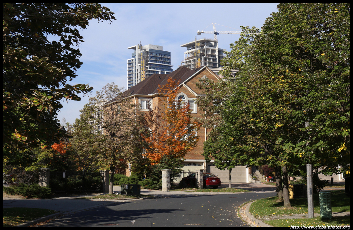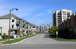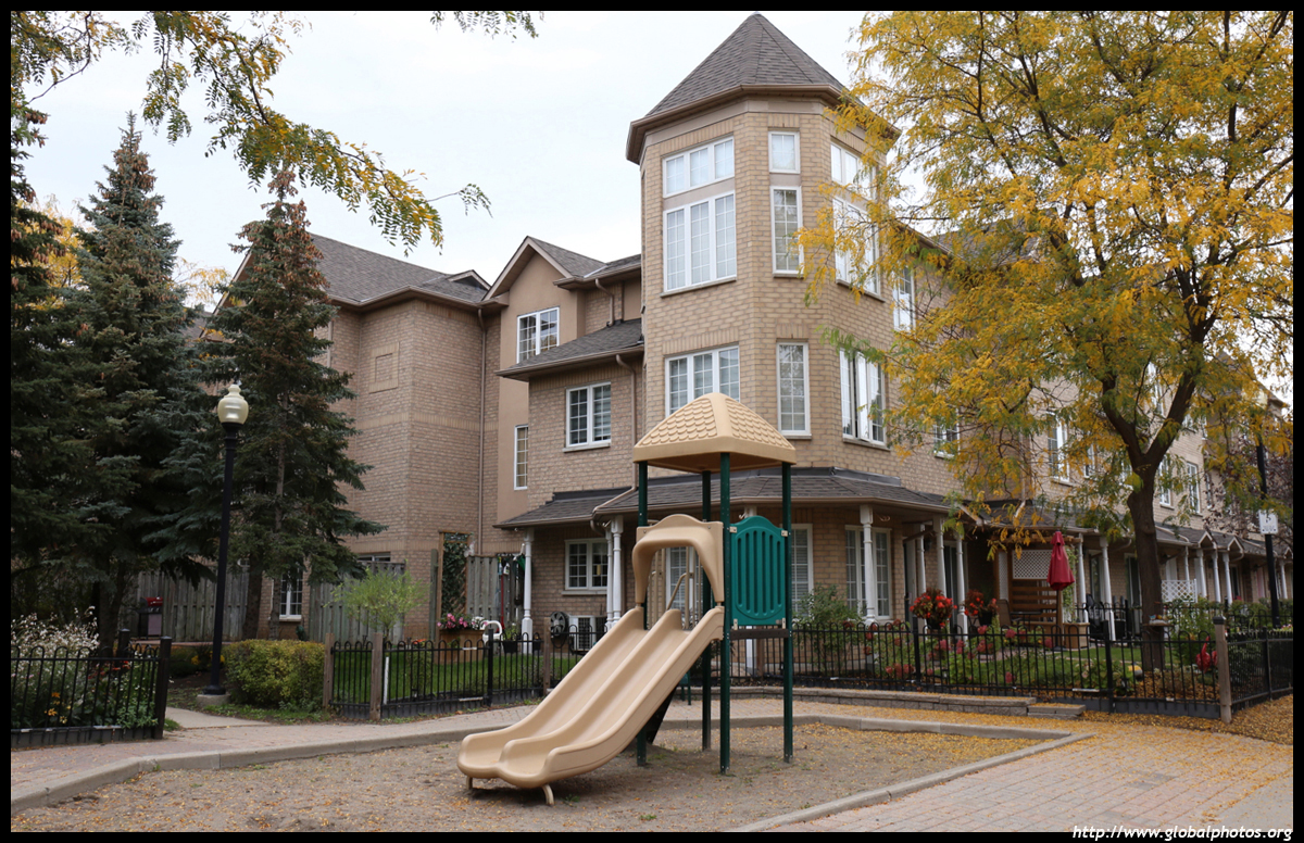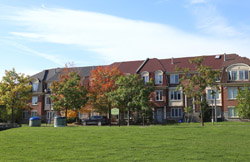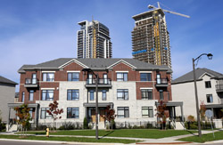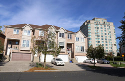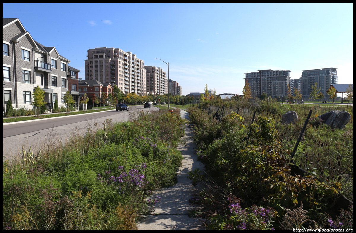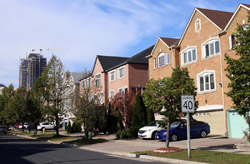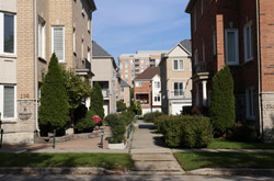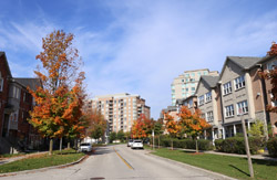 Trying to shed away the typical suburb's image of lowrise sprawl, many highrise projects are being developed along the Highway 7 corridor, the major east-west road. Between Bayview and Leslie, a piece of land edged against the noisy Highway 407 has been transformed into a community of mixed densities.