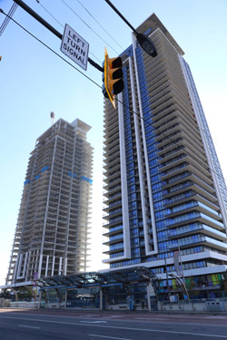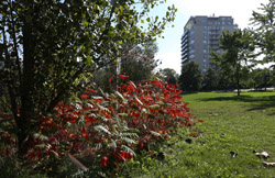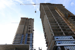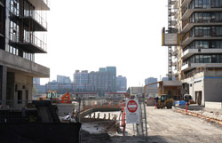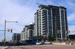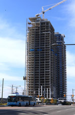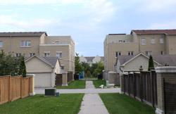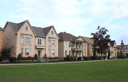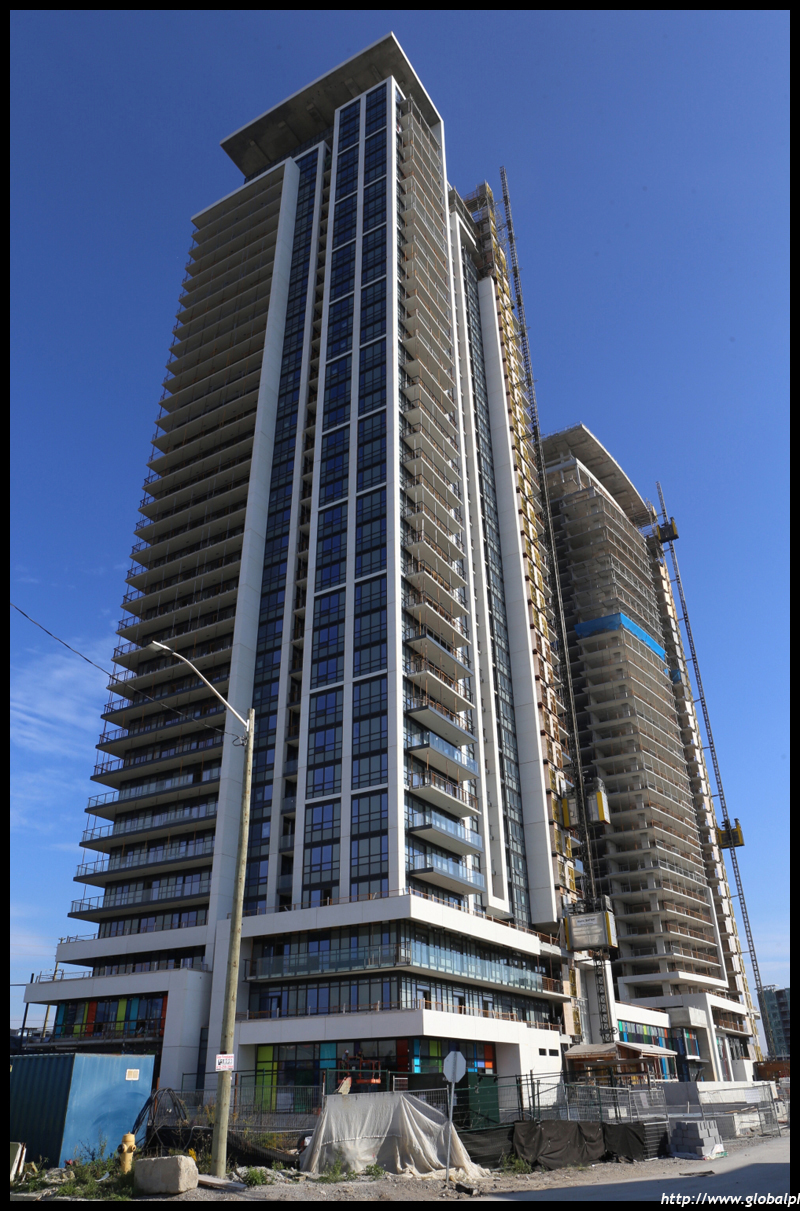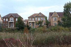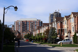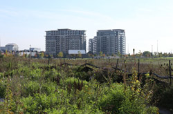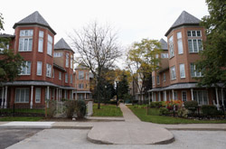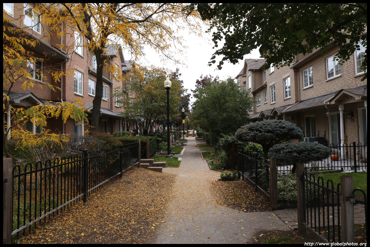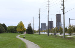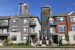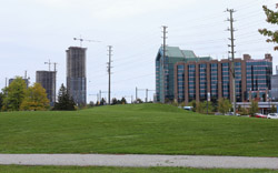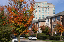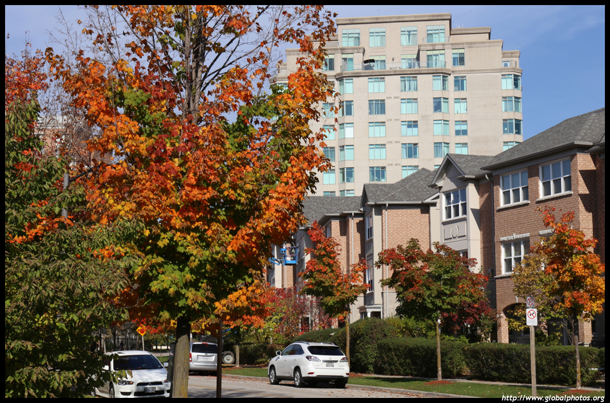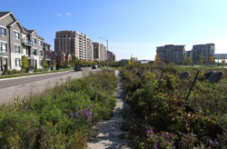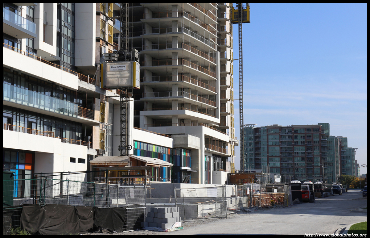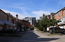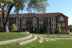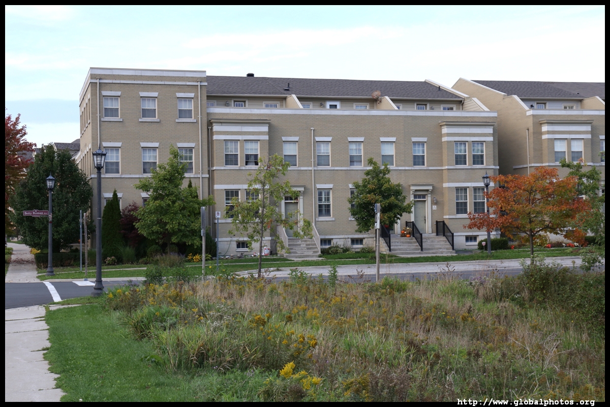 Trying to shed away the typical suburb's image of lowrise sprawl, many highrise projects are being developed along the Highway 7 corridor, the major east-west road. Between Bayview and Leslie, a piece of land edged against the noisy Highway 407 has been transformed into a community of mixed densities.