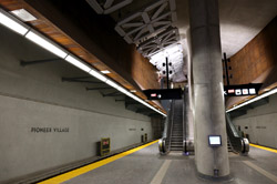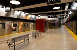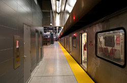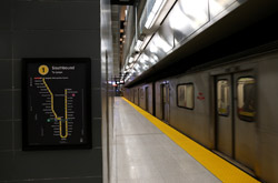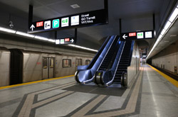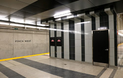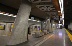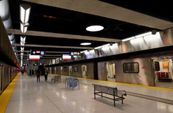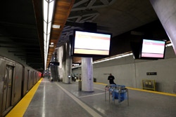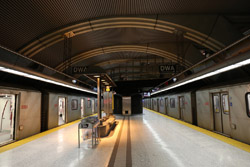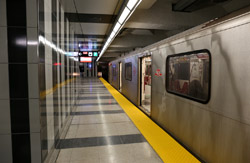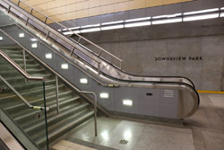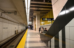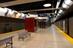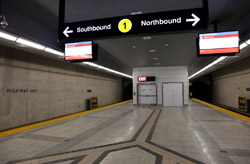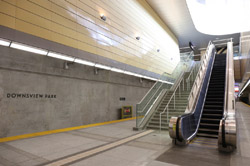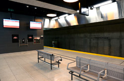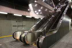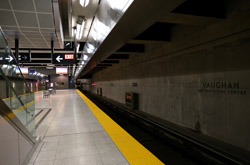 On December 17, 2017, the 8.6km Line 1 subway extension opened to Vaughan, marking the first time the subway has crossed the Toronto city border. Of the 6 new subway stations, 2 are located in York Region, accounting for 2.4km of track. The $3.2 billion extension was funded by the federal, provincial, and municipal governments.For more information on the subway extension, visit the TTC's dedicated project website. This extension was quite controversial, as there were more pressing transit needs that wanted the funding, such as the replacement of Line 3 and a downtown relief line. While York University was a major beneficiary, the stretches in Vaughan were quite empty and had little residential density to support the line. Meanwhile, the notion of a downtown-to-suburb commute was also becoming outdated with more suburb-to-suburb commutes emerging. The extension begins at Downsview station, the former terminus of Line 1 and has since been renamed Sheppard West.