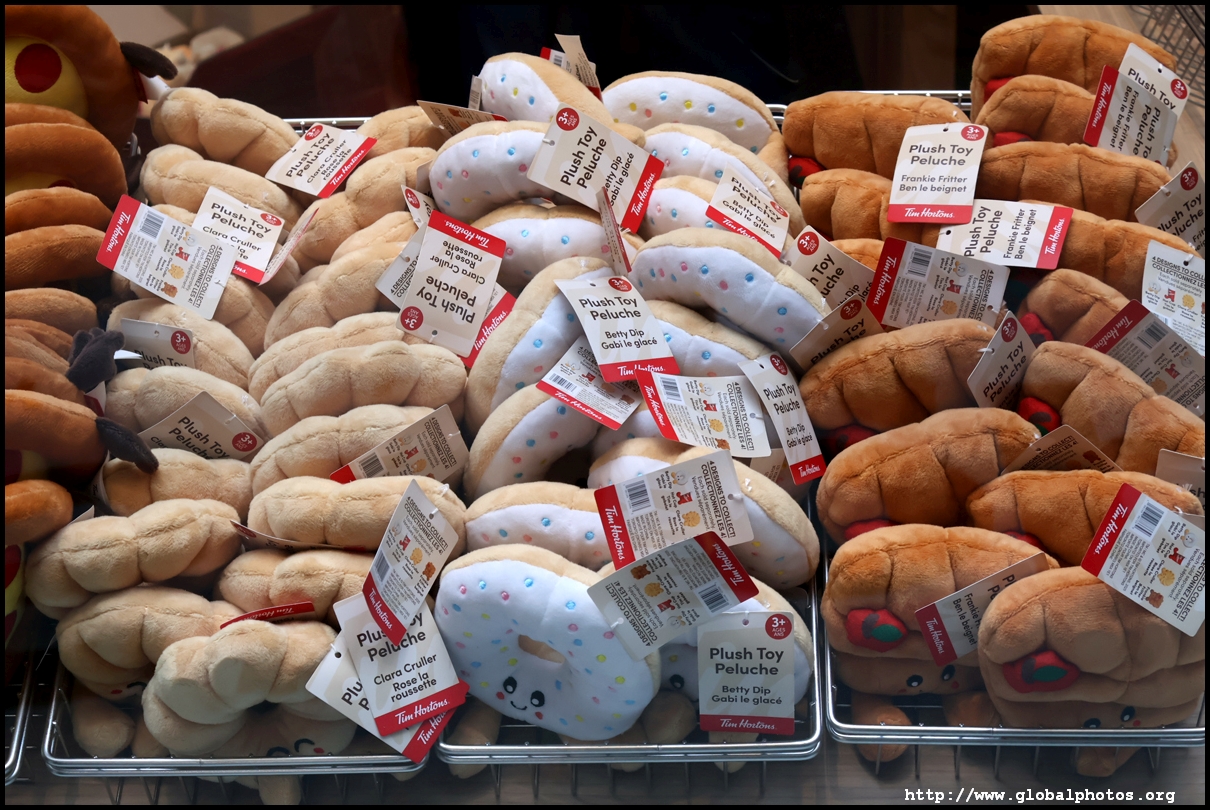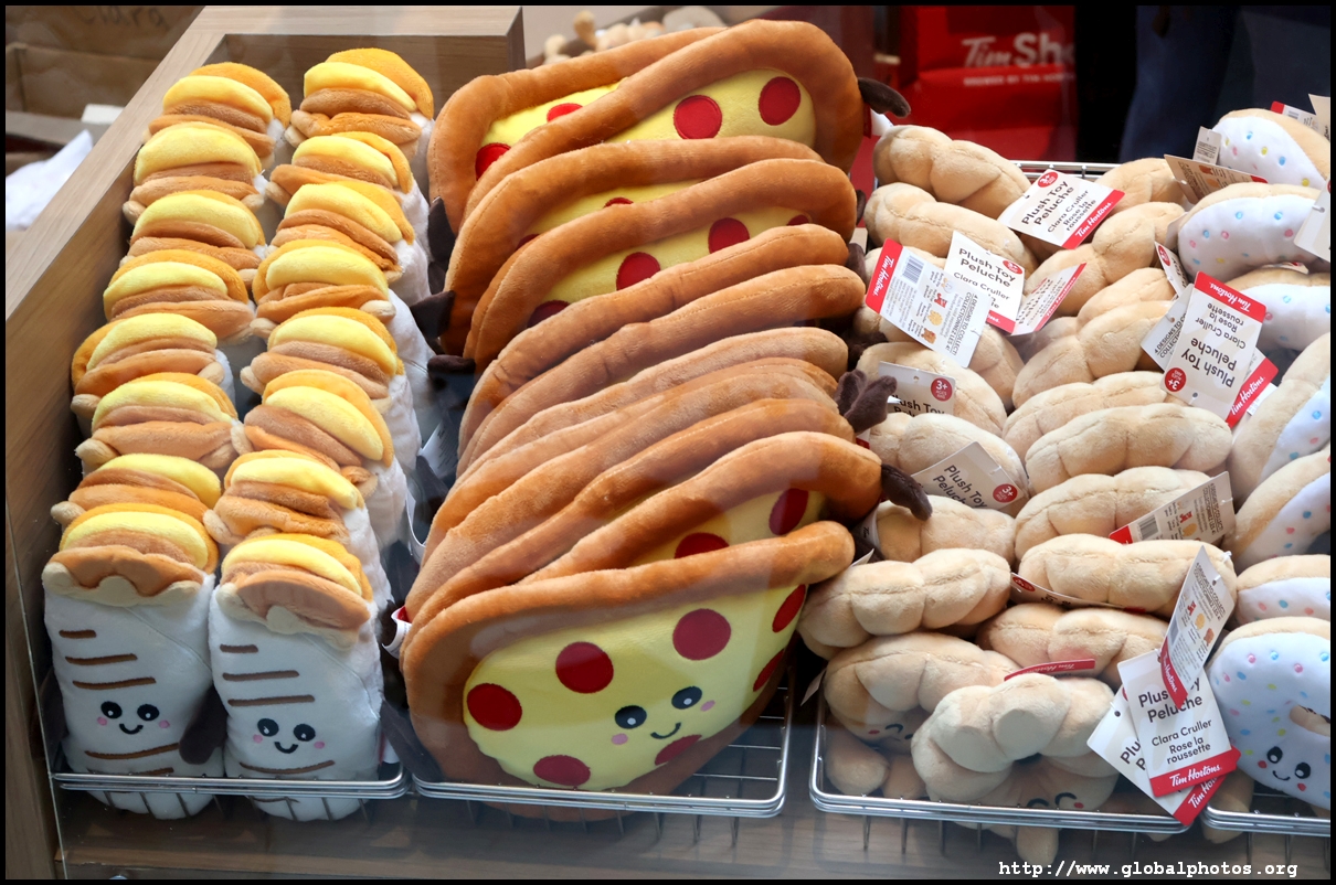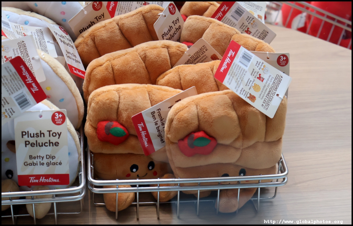 In November 2025, Canadian coffee chain Tim Hortons opened a pop-up merch store in Toronto's Eaton Centre. There are actually 2 locations - 1 selling their mech items, and another is a toy truck offering a Jellycat-like experience with "chefs" cooking up plush toys representing their menu items.This special event will run to the end of the year for the merch store, and only 2 weeks in November for the toy truck. Tim Hortons opened its first restaurant in Hamilton, Ontario, in 1964. It is now the country's largest restaurant chain with nearly 4000 locations, offering coffees, iced capps, donuts, and sandwiches. Toy truck : the wait is 1.5 hours when I visited.