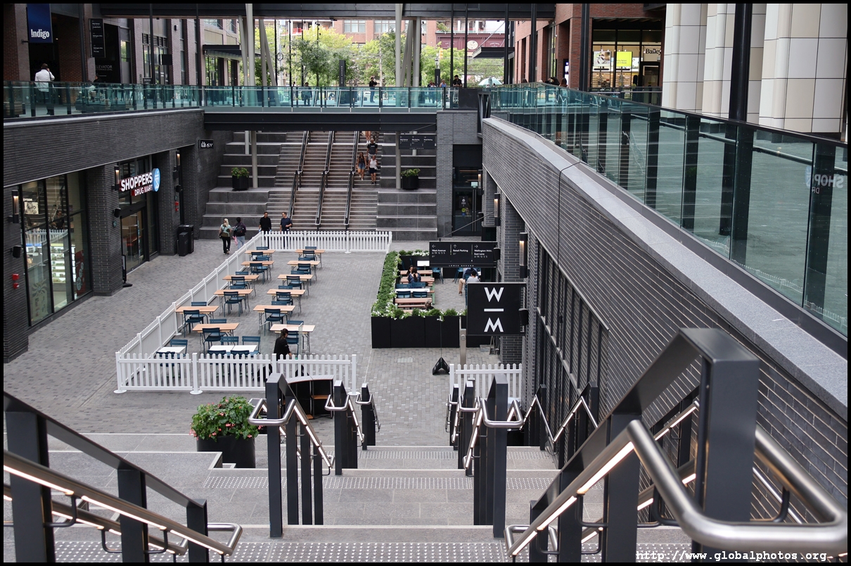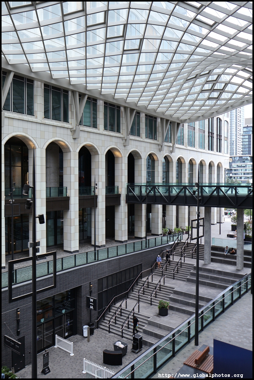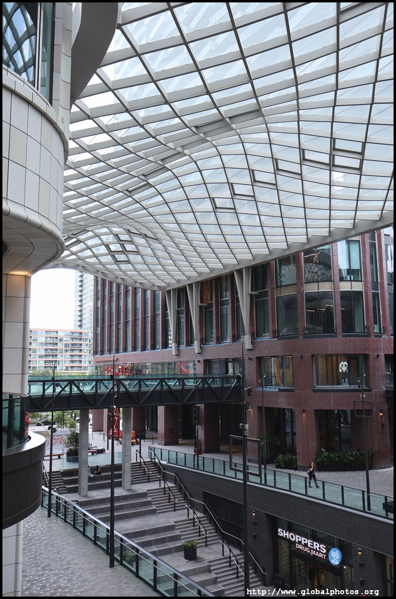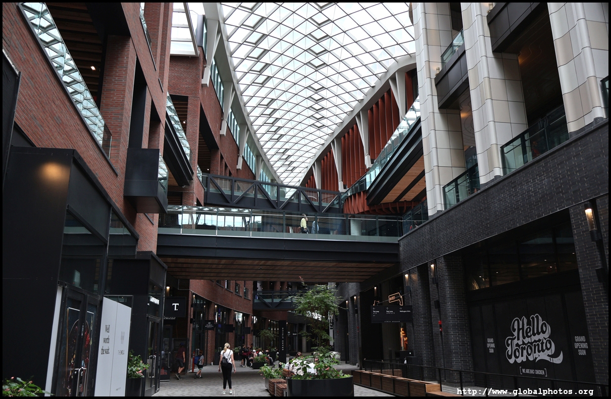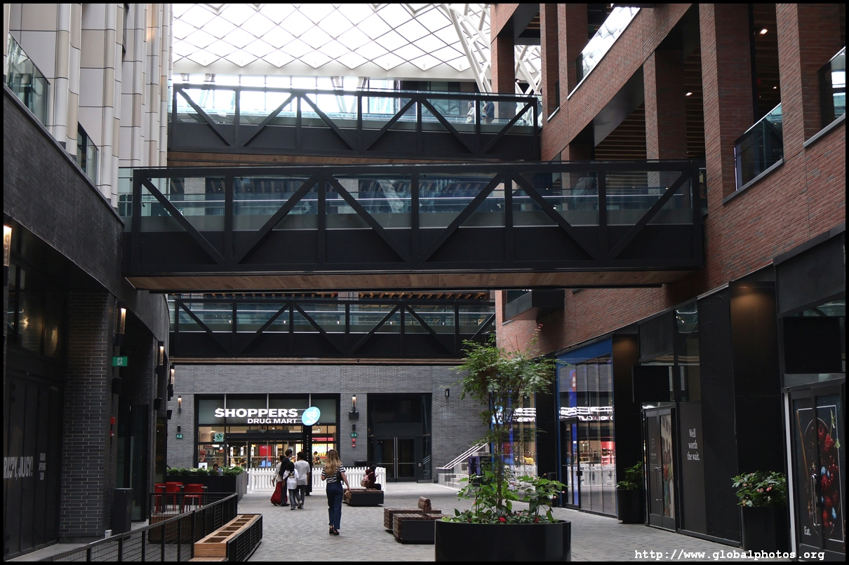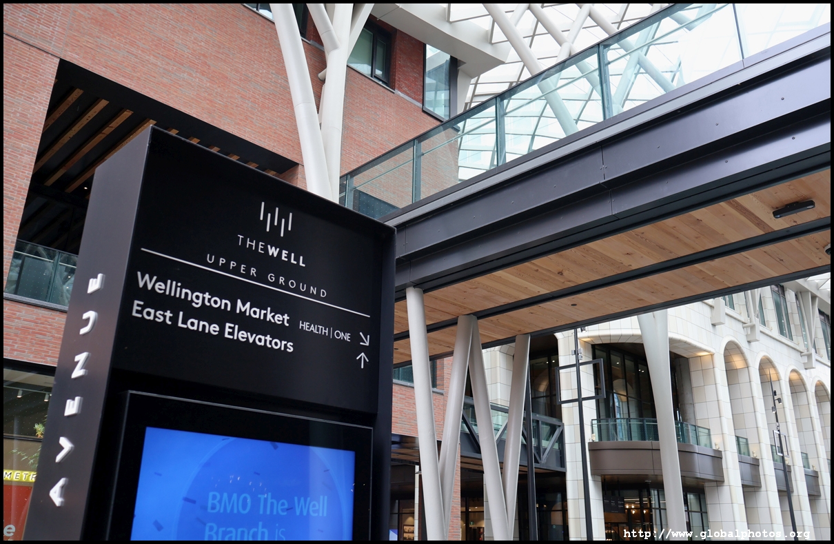 Located on a 7.8 acre site at Front Street and Spadina Avenue across the railroad tracks from Cityplace, The Well comprises 6 residential towers, 1 office tower, and 420,000 square feet of retail space with a pedestrianized outdoor shopping street that has a protective glass canopy above it.The concept of having pedestrian first over car is quite novel in Toronto. The architects had envisioned a 5 or 15-minute city where living, working, and shopping can be achieved. As usual, the media had focused on the less affordable downtown prices such as $2524 per month for a studio or $6553 a month for a 3-bedroom and why the city didn't force the developers to add affordable housing, although they argued inclusionary zoning regulation came into effect after this project's plan was approved. Historically, this area was a manufacturing and warehouse zone in the first half of the 20th century.