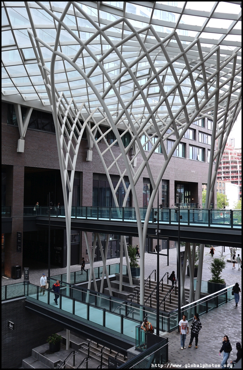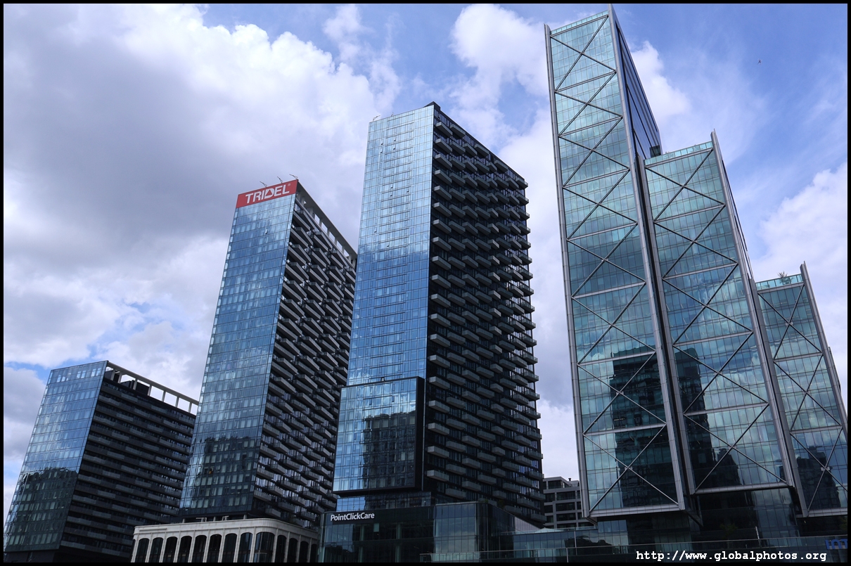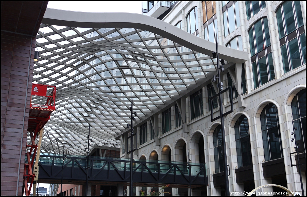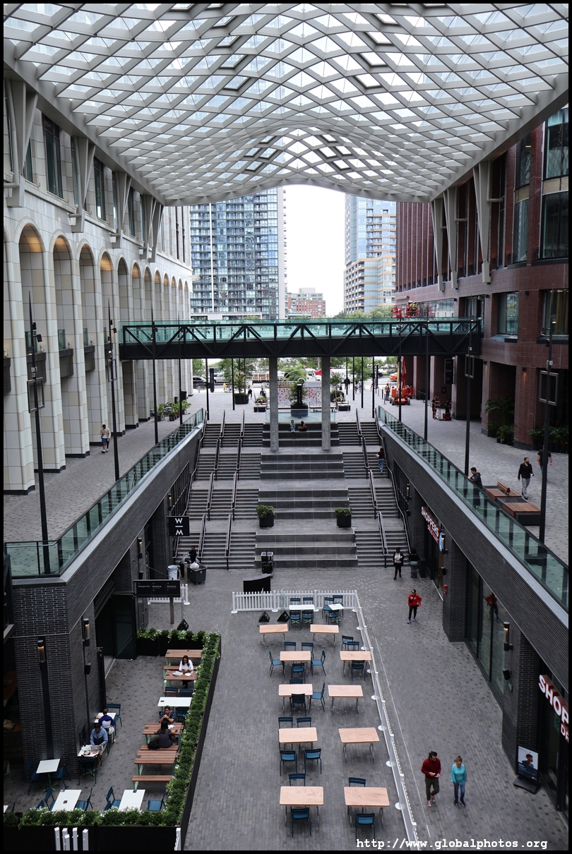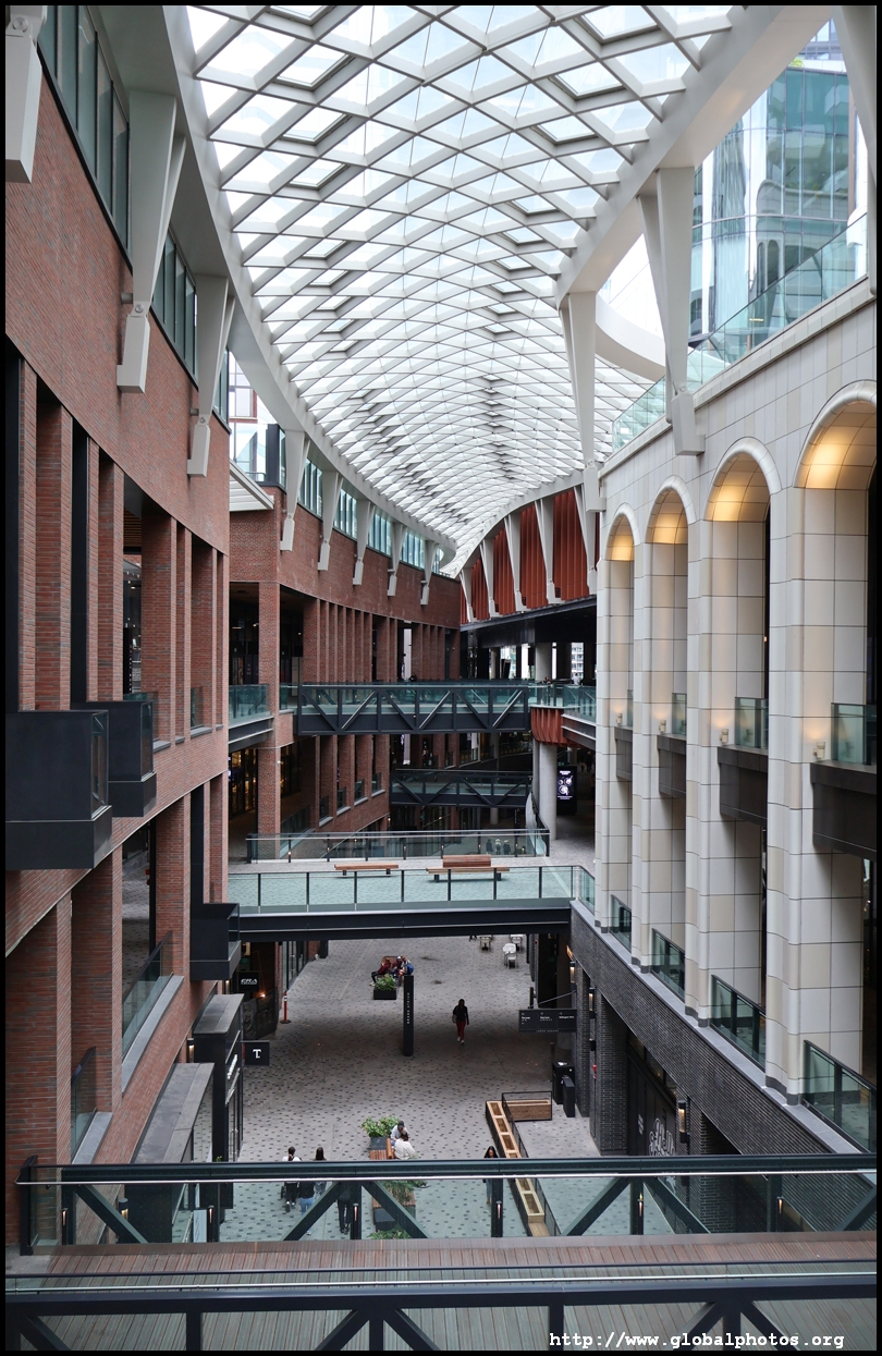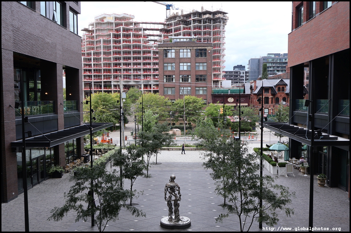 Located on a 7.8 acre site at Front Street and Spadina Avenue across the railroad tracks from Cityplace, The Well comprises 6 residential towers, 1 office tower, and 420,000 square feet of retail space with a pedestrianized outdoor shopping street that has a protective glass canopy above it.The concept of having pedestrian first over car is quite novel in Toronto. The architects had envisioned a 5 or 15-minute city where living, working, and shopping can be achieved. As usual, the media had focused on the less affordable downtown prices such as $2524 per month for a studio or $6553 a month for a 3-bedroom and why the city didn't force the developers to add affordable housing, although they argued inclusionary zoning regulation came into effect after this project's plan was approved. Historically, this area was a manufacturing and warehouse zone in the first half of the 20th century.