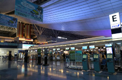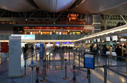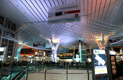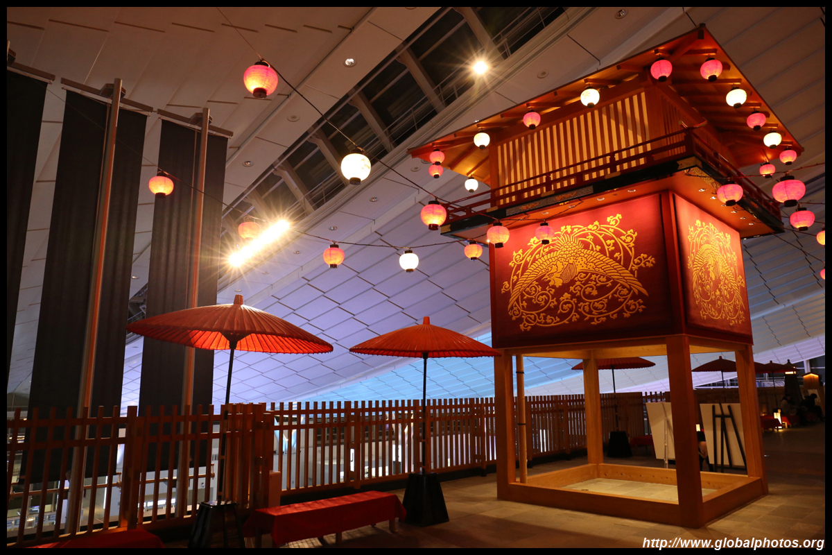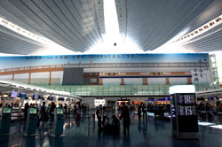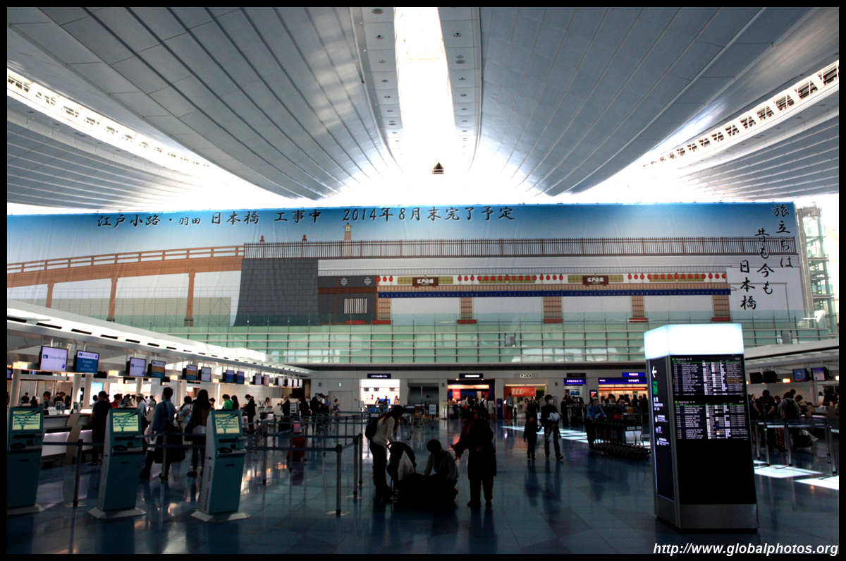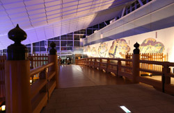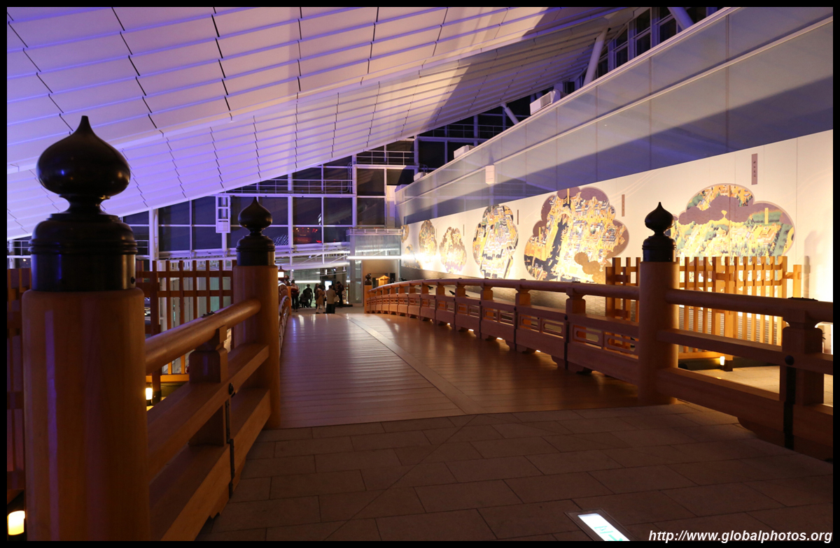 Nihonbashi Bridge has been re-created above the check-in counters with murals depicting the city in the early Edo period. The original was built in 1603 in the city although the Haneda version is a half size replica of the bridge as of the 19th century.