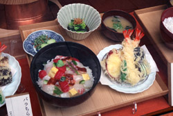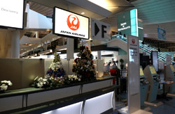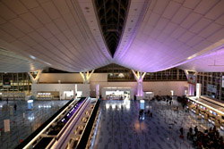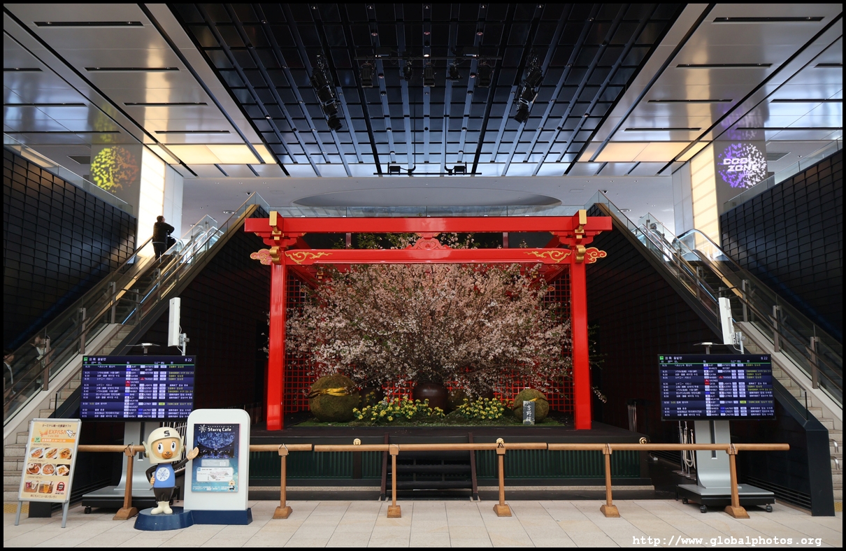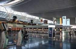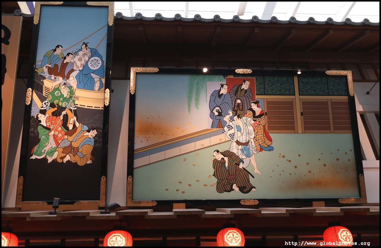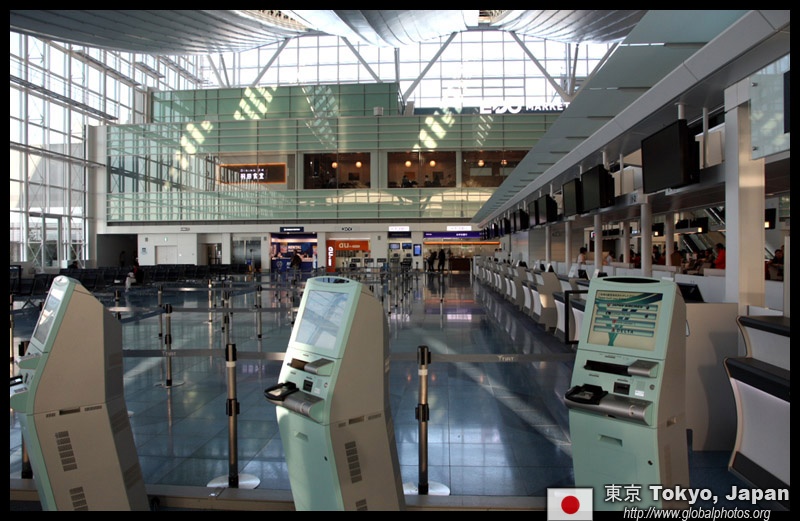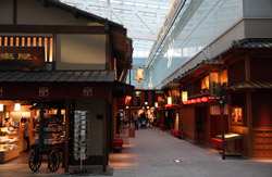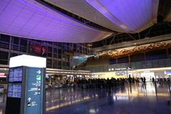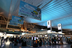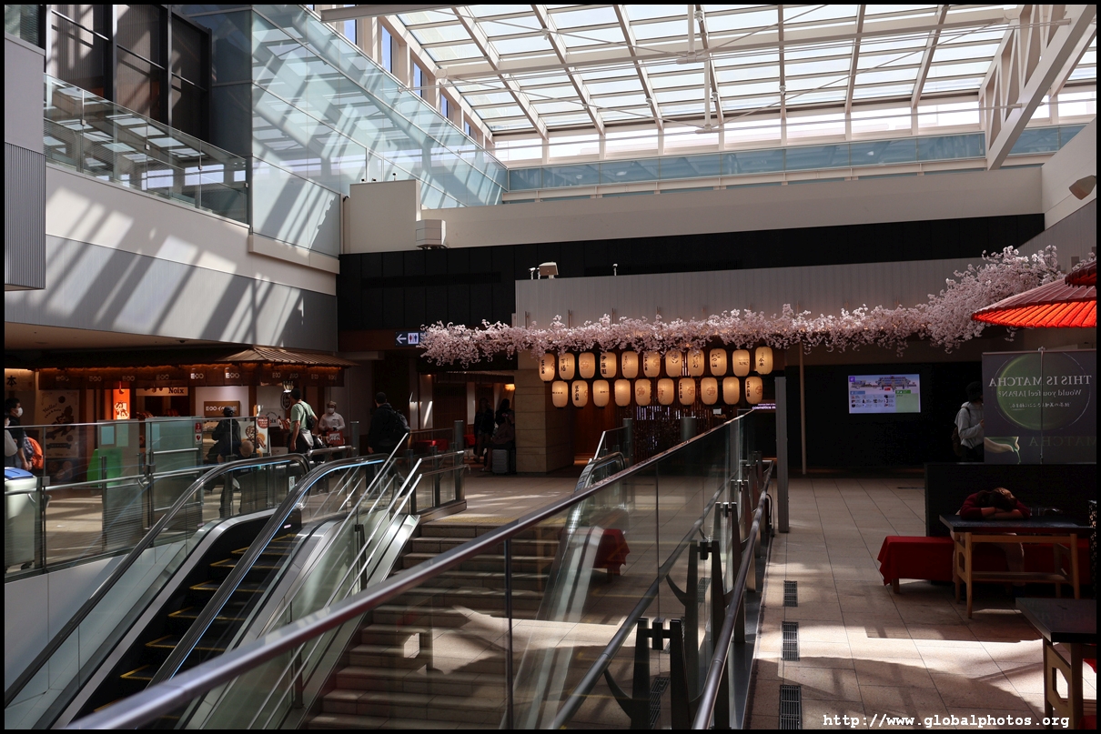 Nihonbashi Bridge has been re-created above the check-in counters with murals depicting the city in the early Edo period. The original was built in 1603 in the city although the Haneda version is a half size replica of the bridge as of the 19th century.
