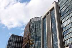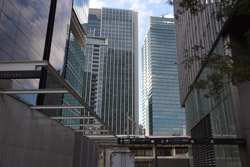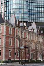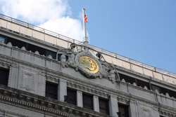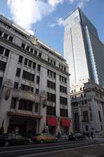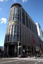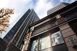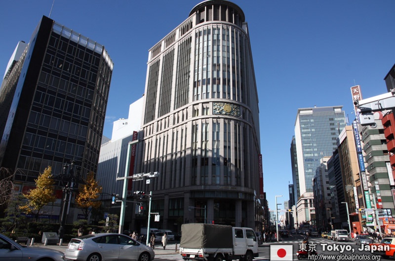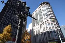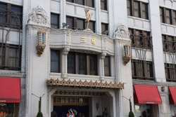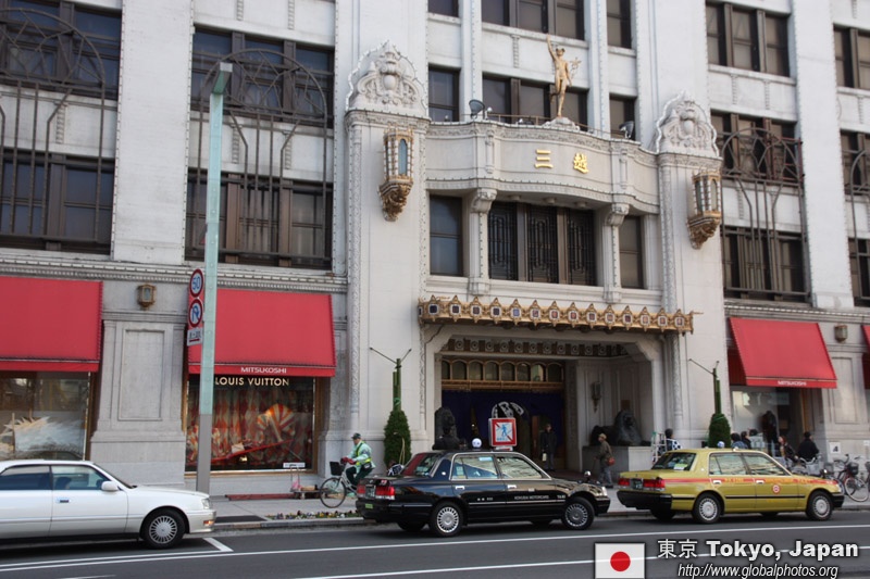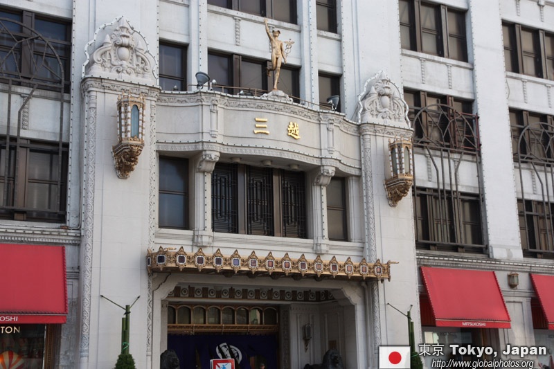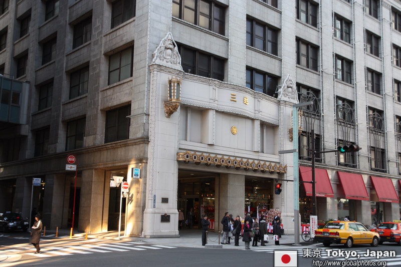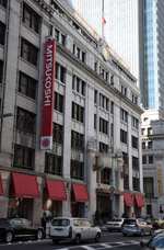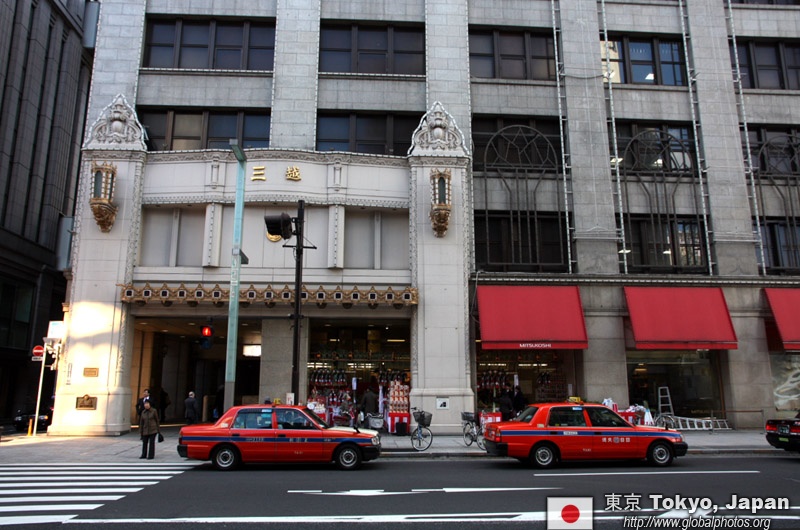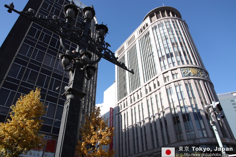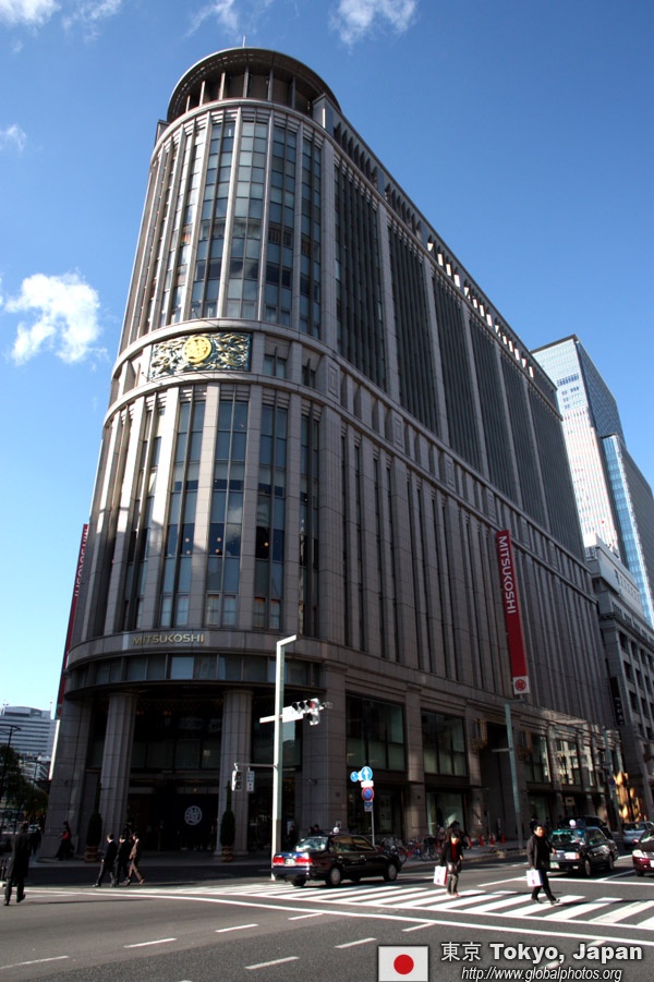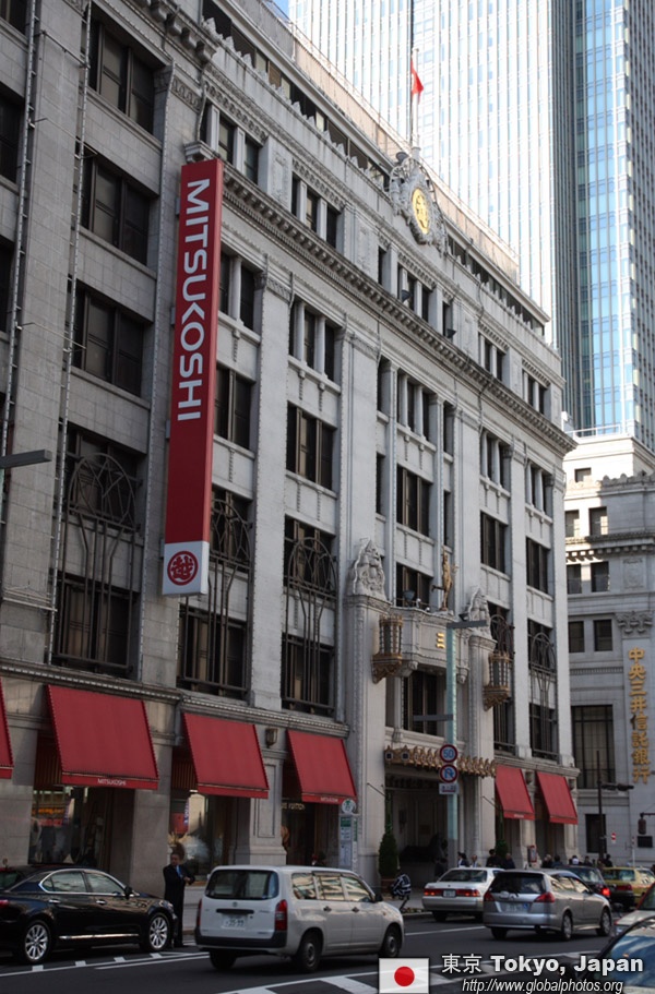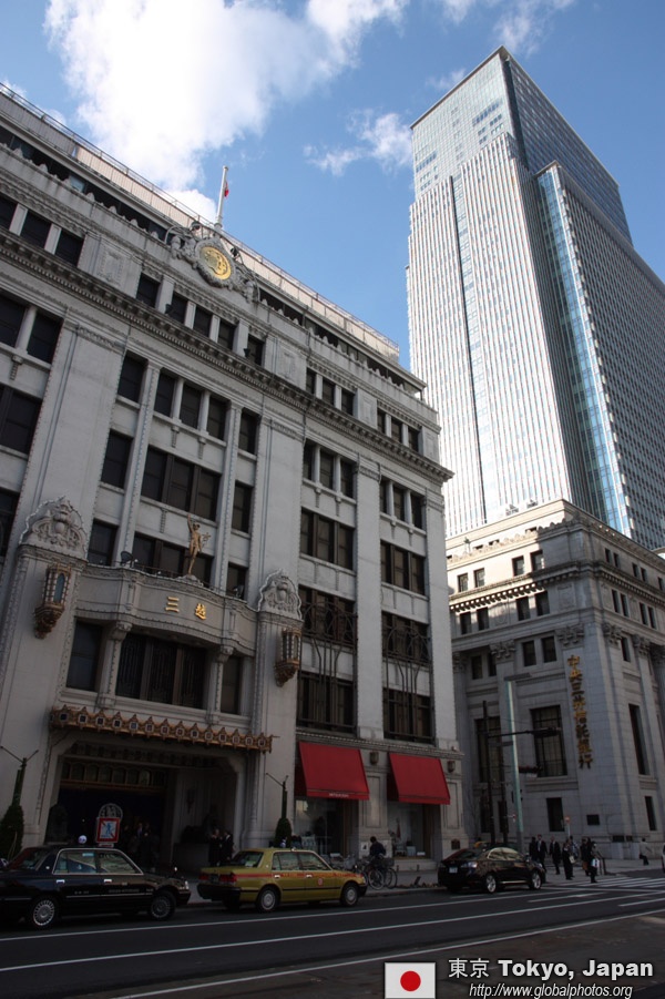 A historic Mitsukoshi department store still survives in this redeveloped area of modern skyscrapers.