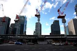 Although the guidebooks say Tokyo Station is modeled after Amsterdam's Centraal, the building is covered up under reconstruction. A new skyscraper is also being built next door. Change is in the air.