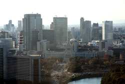 The Marunouchi Building has 2 restaurant floors at the top, and a big open window with a view west towards the Imperial Palace. However, the light was against me when I arrived in the afternoon.