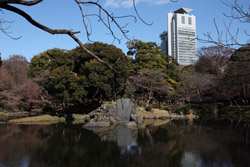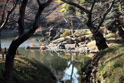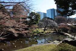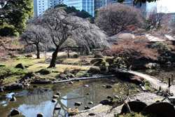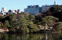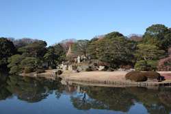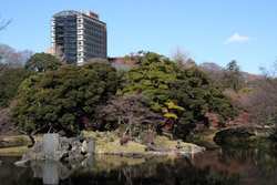Rikugien is a beautiful park of ponds and hills in the northern part of Tokyo. Built in the early 18th century, it was donated to the City of Tokyo in 1938 by the founder of Mitsubishi.