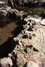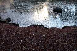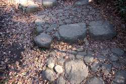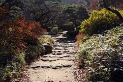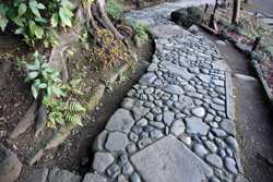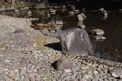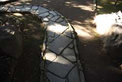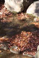 A serene stone path by the water is lit up by the morning sun. It wasn't a very cold December day after all.