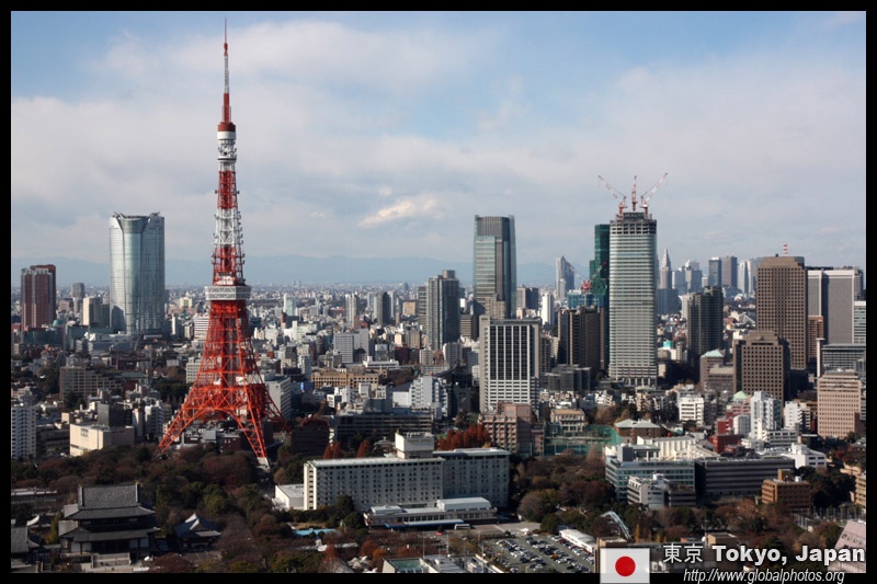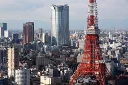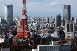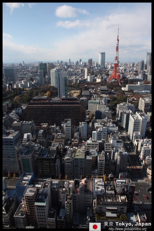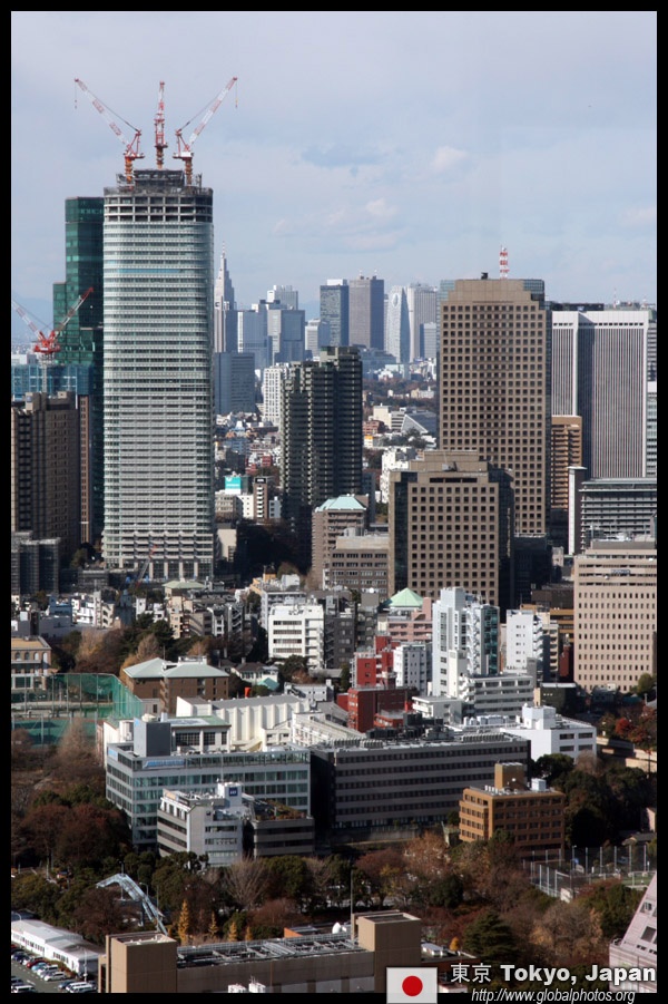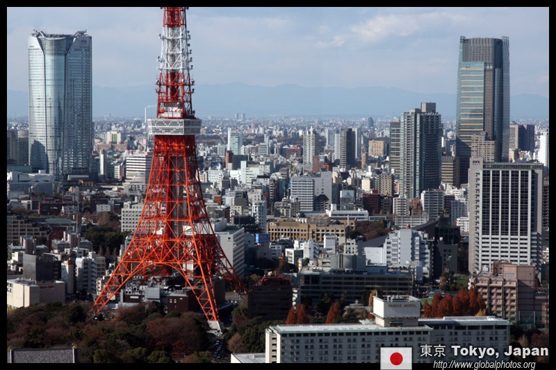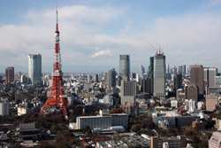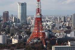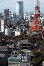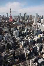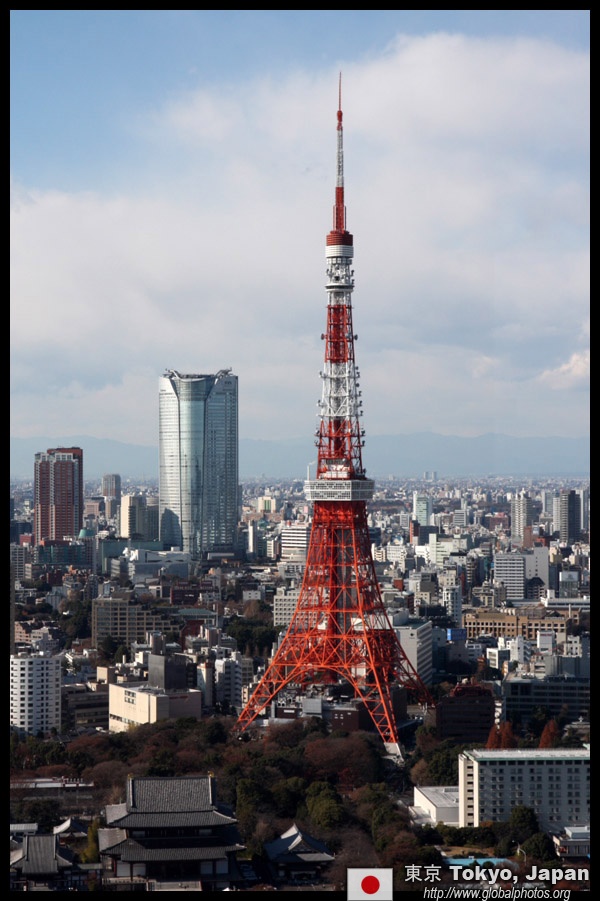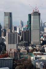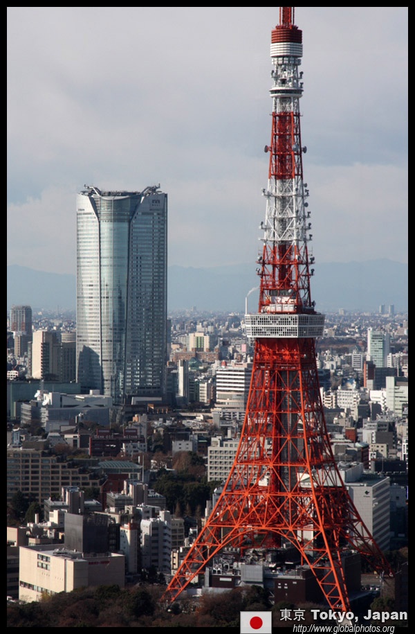 Wintry air clears out the smog, and the skies were exceptionally clear today. Tokyo Tower is topped out but will not open for another half year.