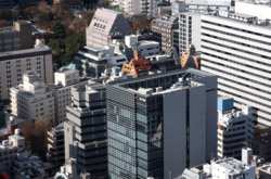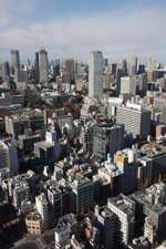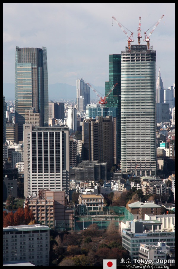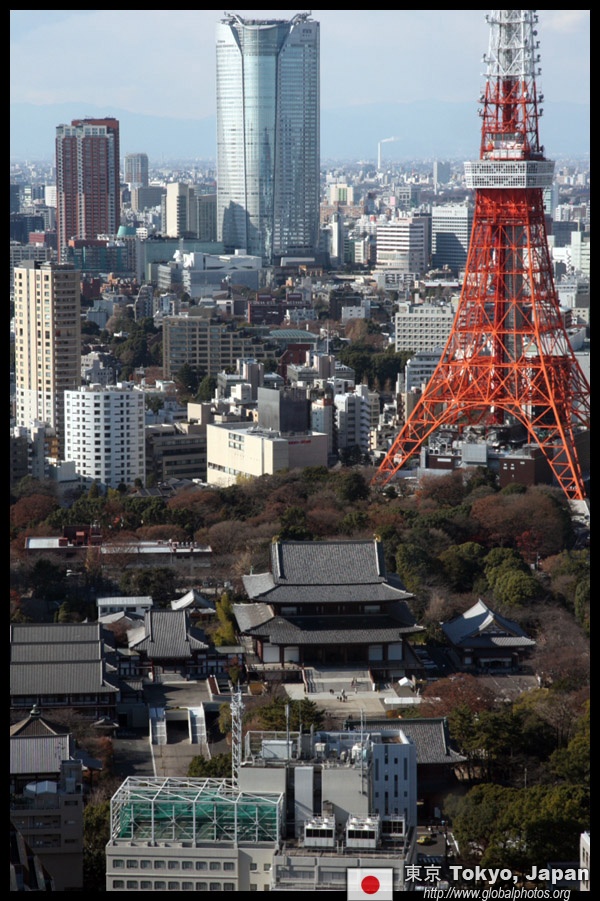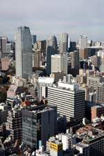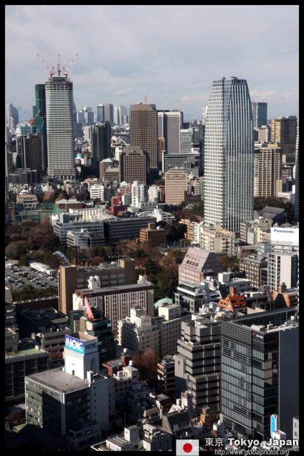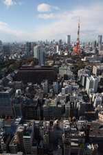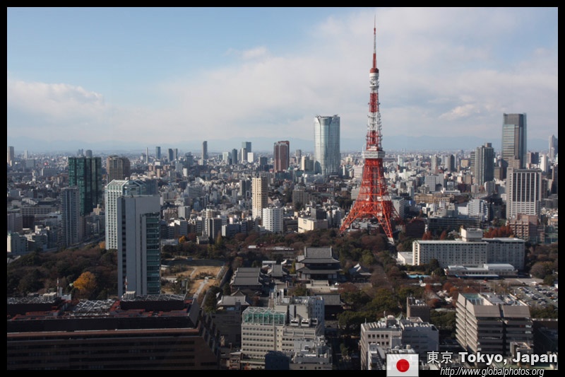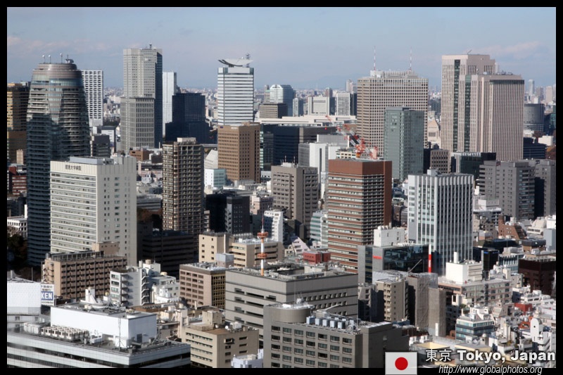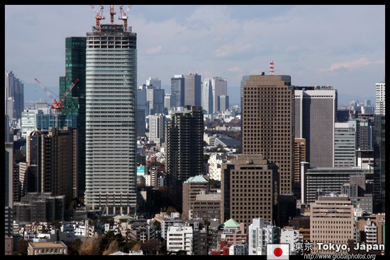 Wintry air clears out the smog, and the skies were exceptionally clear today. Tokyo Tower is topped out but will not open for another half year.
