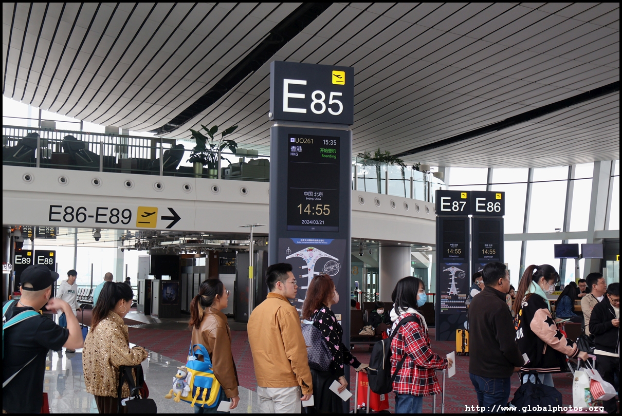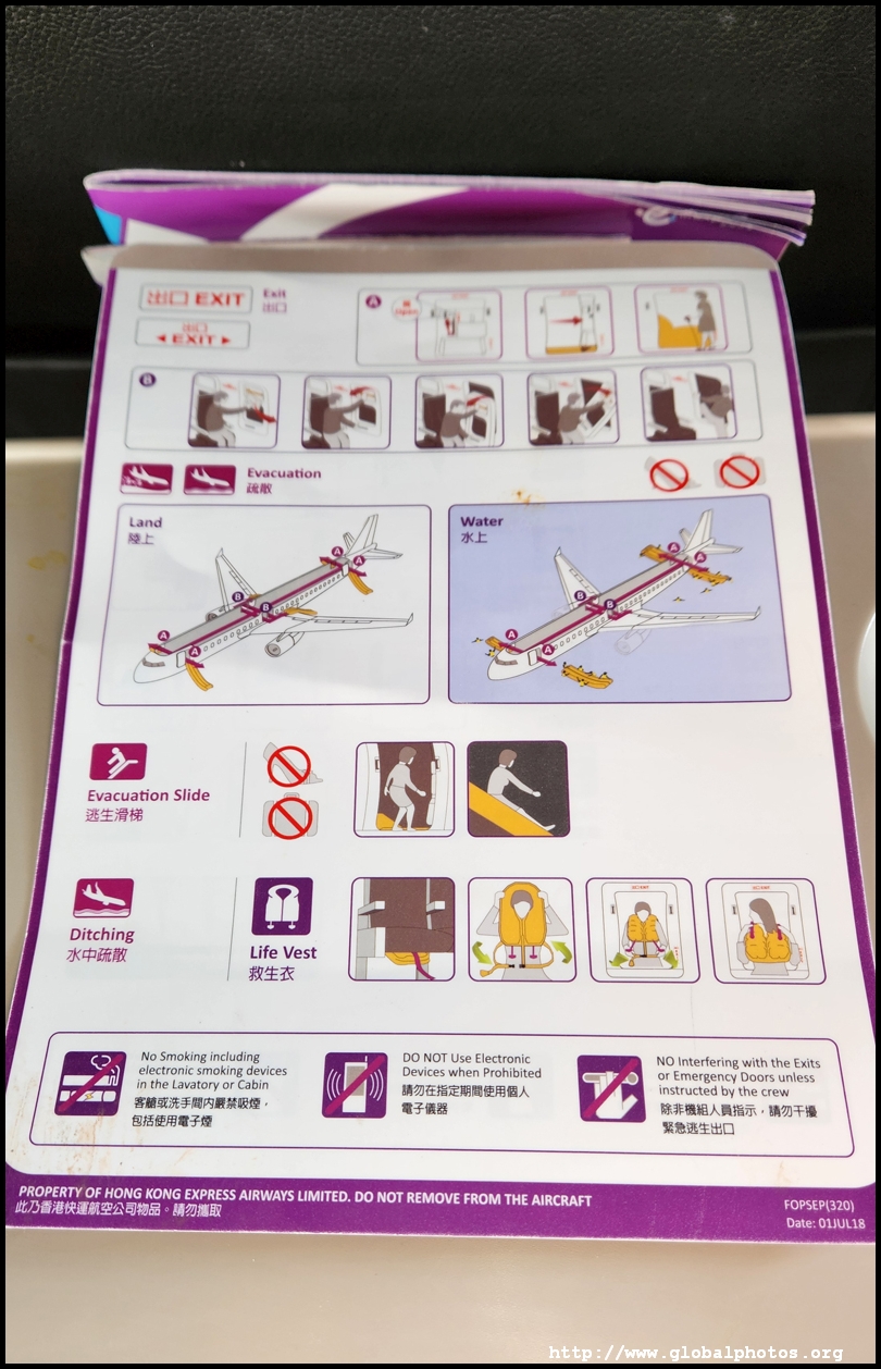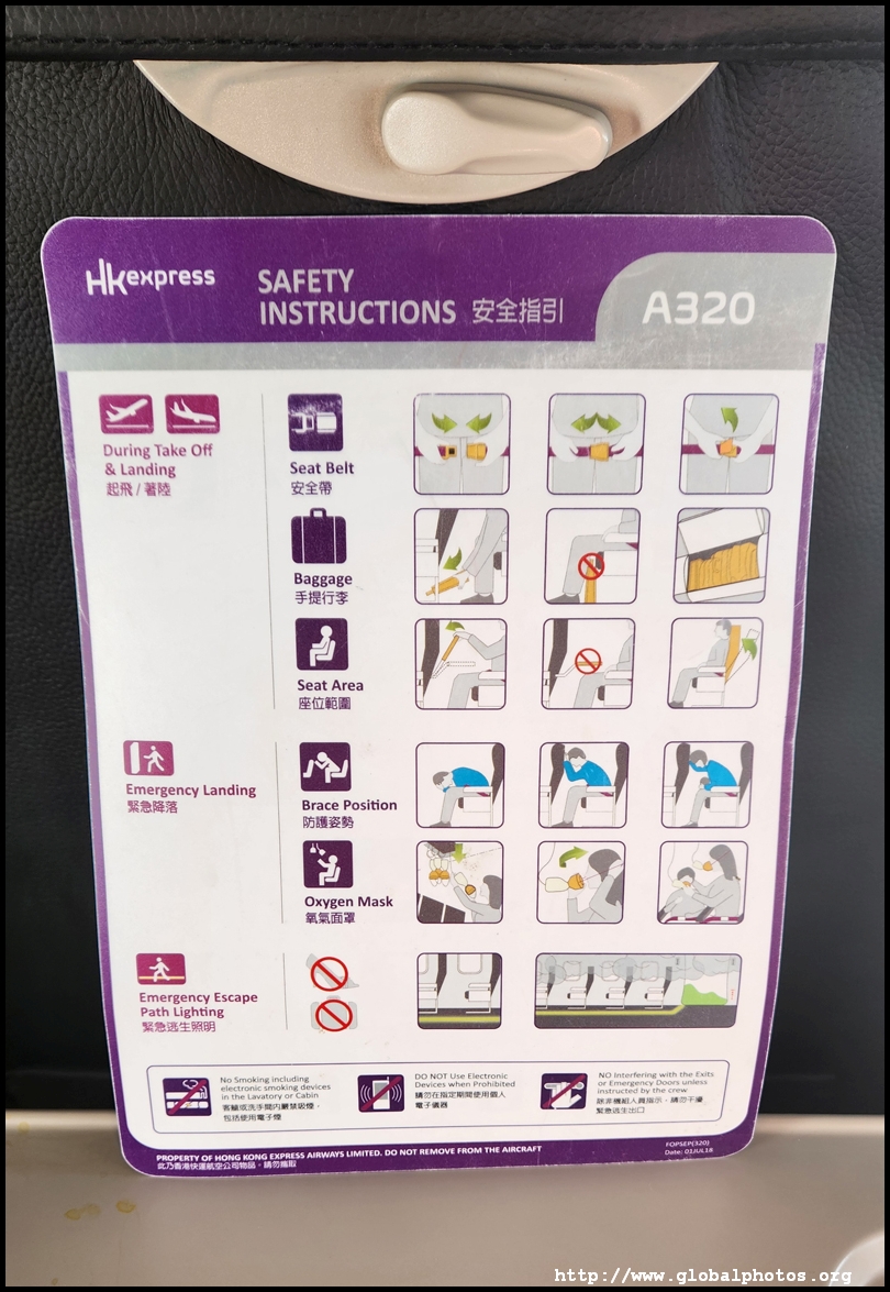 Just a little over 2 hours ahead of departure, I reached an empty check-in aisle for Hong Kong Express. They only have 4 counters open but it was pretty empty. I haven't checked in online the night before to see if I can score a window seat without paying, which is HKD $50 on the website. Unfortunately, getting a seat assignment at the counter would cost twice that, so I was content to have a free middle seat assigned by the computer. My hand carry was slightly over the 7kg limit but the staff affixed the cabin approved tag anyway. As with my prior experiences with Chinese airports, check-in staff don't really give much smiles or greetings.