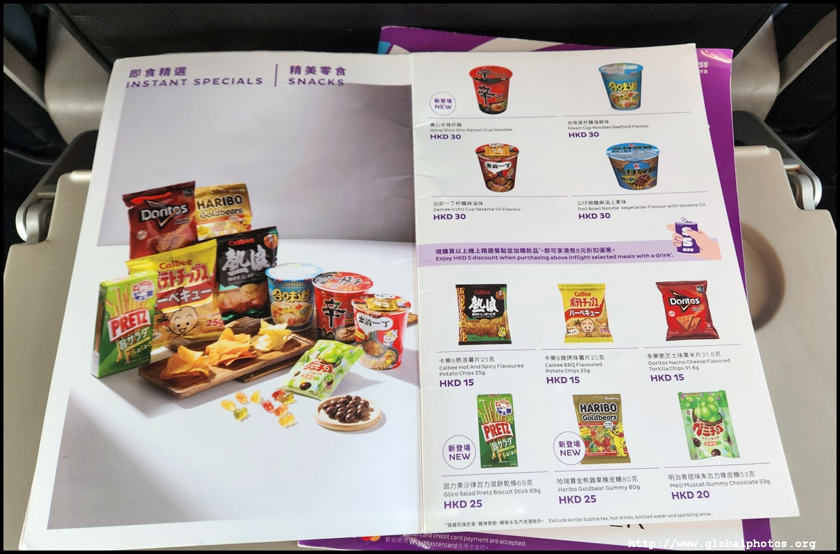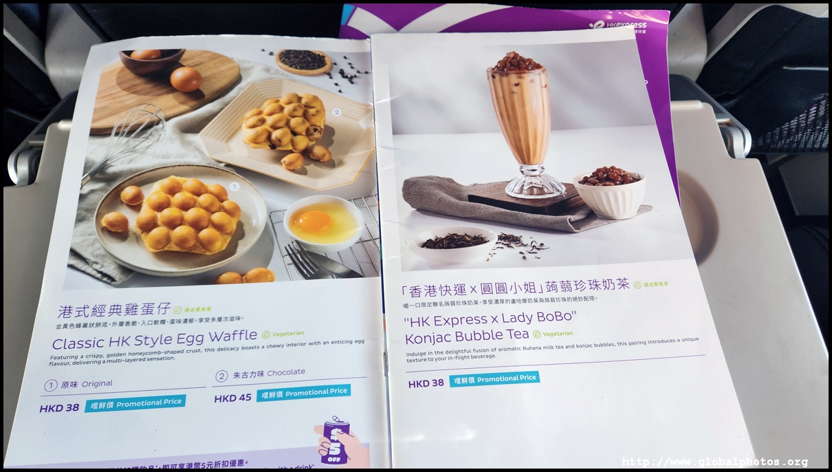 Prices for buy-on-board are not cheap but reasonable by international standards. The traditional Hong Kong-style egg waffle costs more than the noodle I had earlier landside, for comparison.