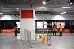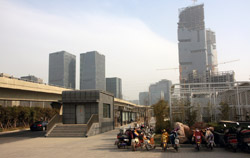The area around the new Zhengzhou East train station is brand new and planned, with large streets and open spaces but somewhat devoid of people.